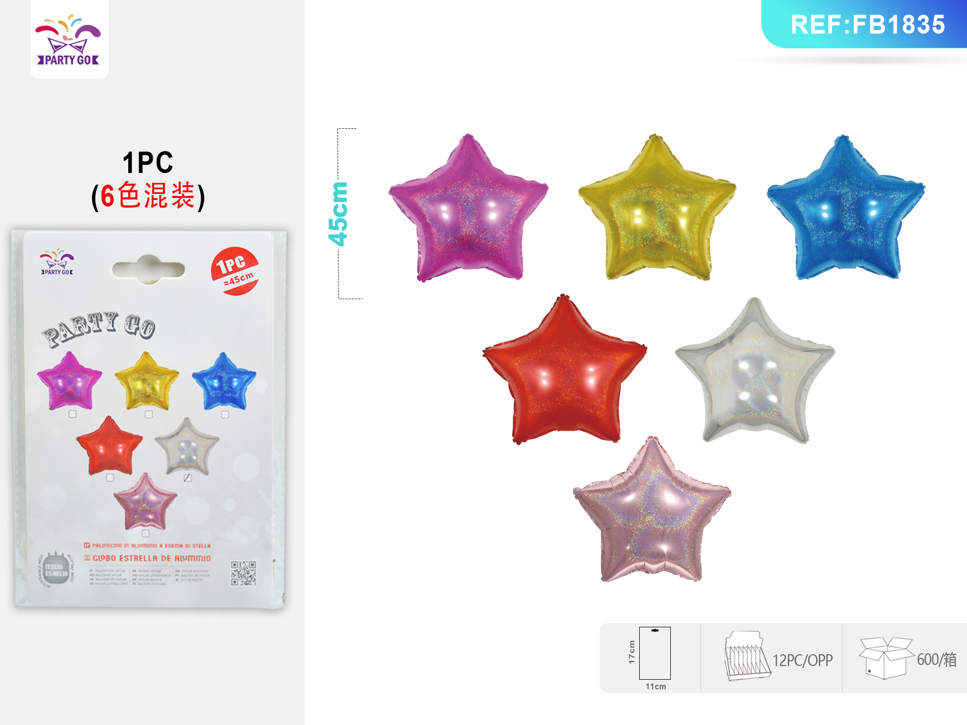 01-Y2-45CM 1PCS 6-Color Mixed Metallic Five-Pointed Star Aluminum Foil Balloon - N
