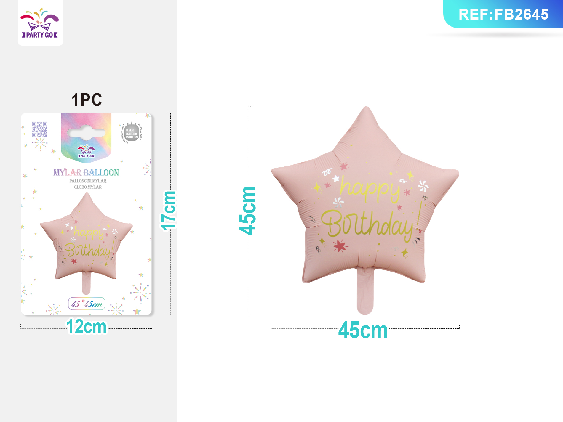 01-Z2-Pink Happy Birthday Five-Pointed Star Aluminum Foil Balloon 45CM*45CM 1PC