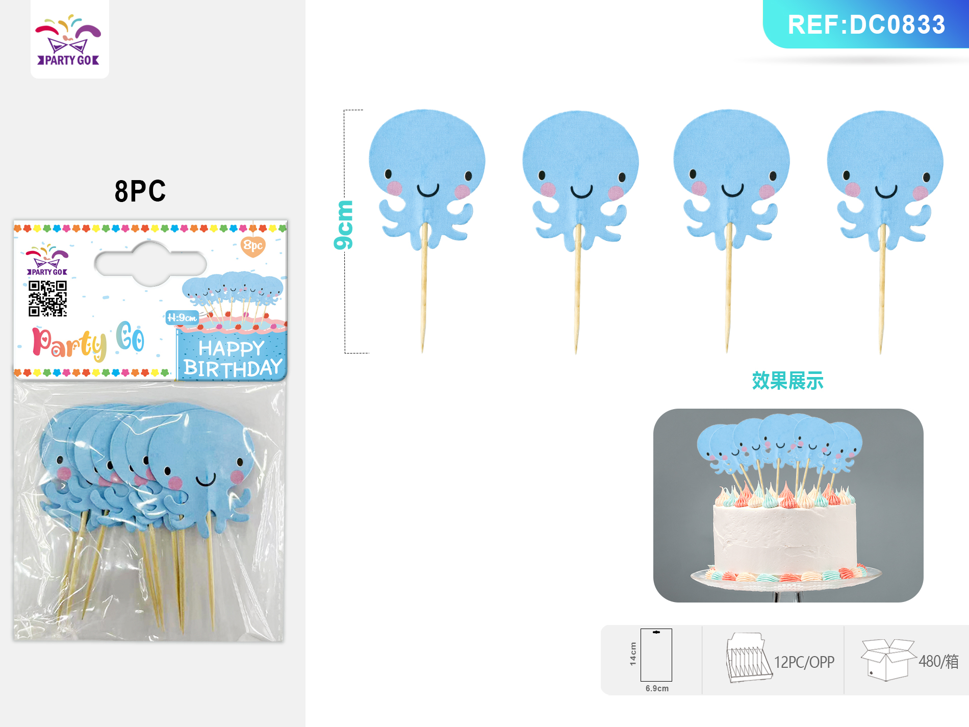 05-L1-Jasnoniebieska flaga na ciasto z ośmiornicą 4*5CM 8PC-N