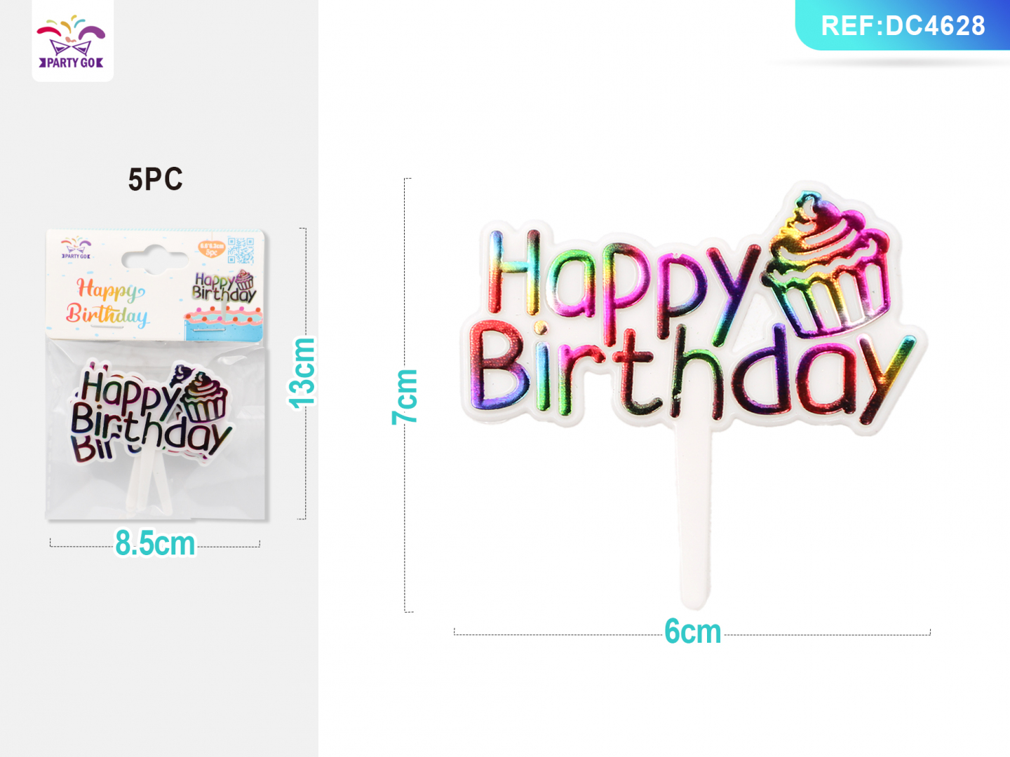 05-M2-Gradientowa wtyczka do tortu urodzinowego w języku angielskim 7,1*8CM 5szt