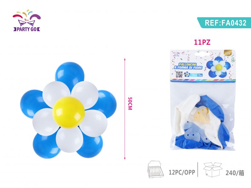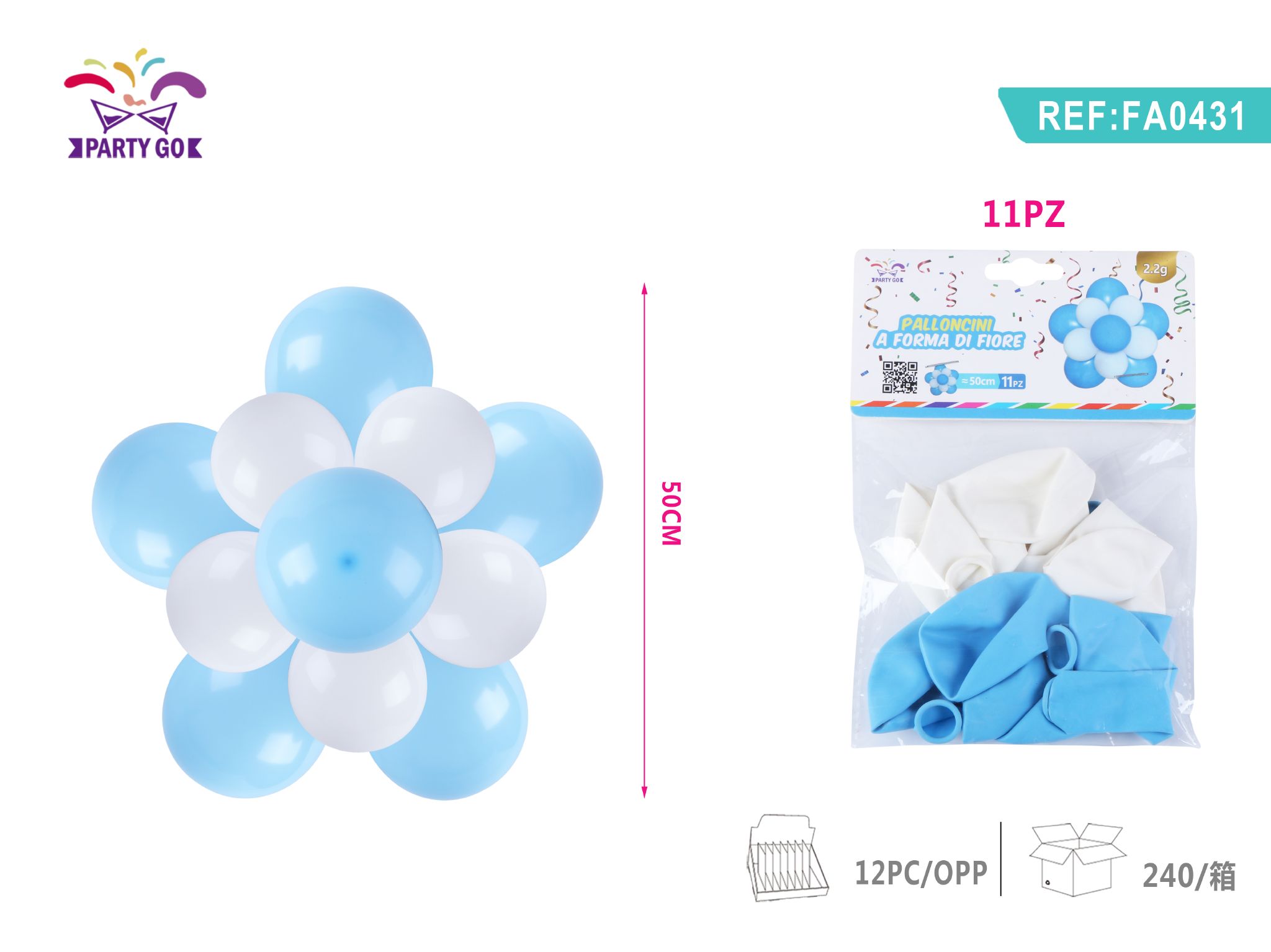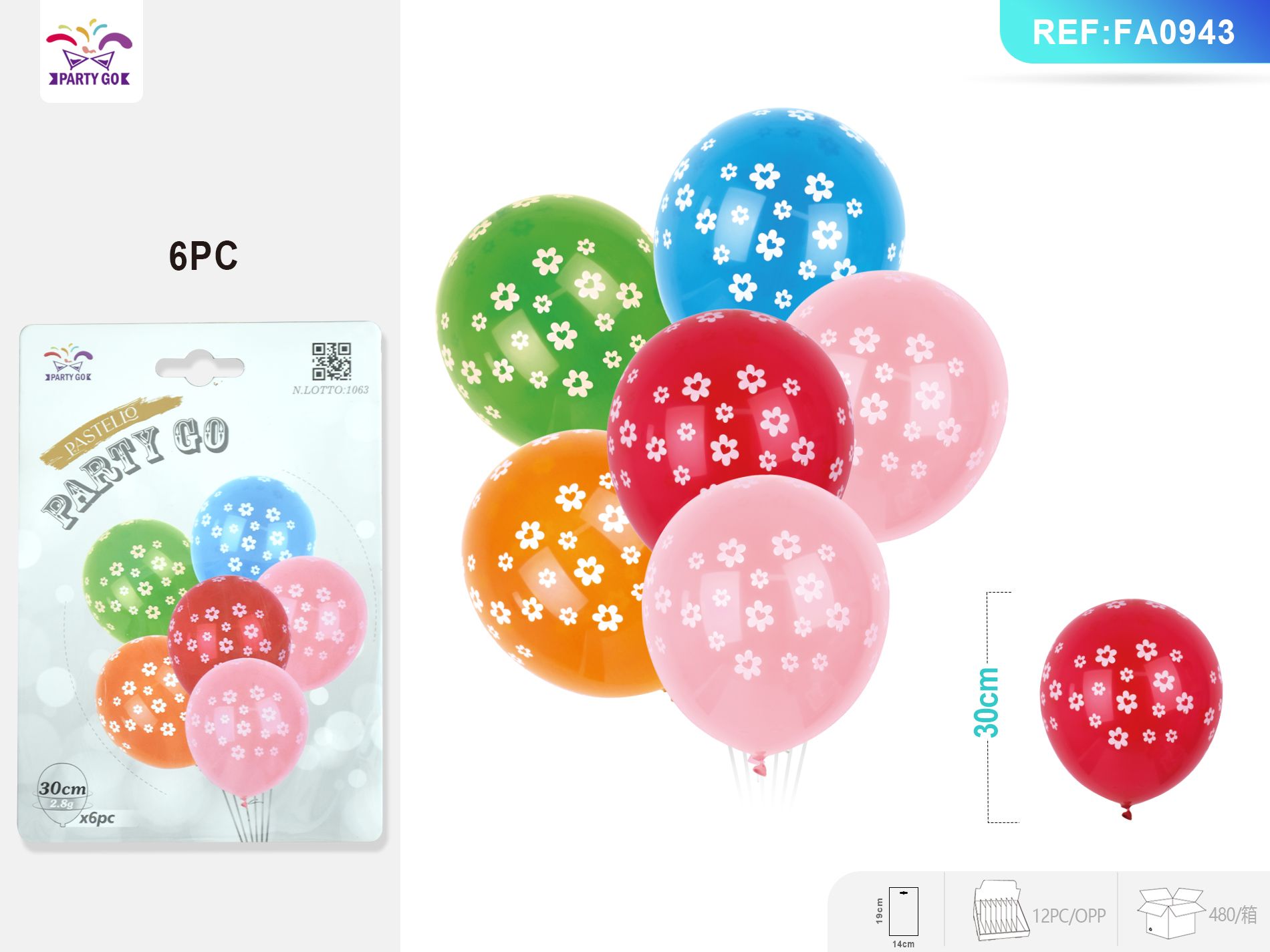 03-A4-12 cali 2,8 g 6 szt. Mieszane kolory, matowe, pięciostronne drukowane balony z białymi kwiatami - N