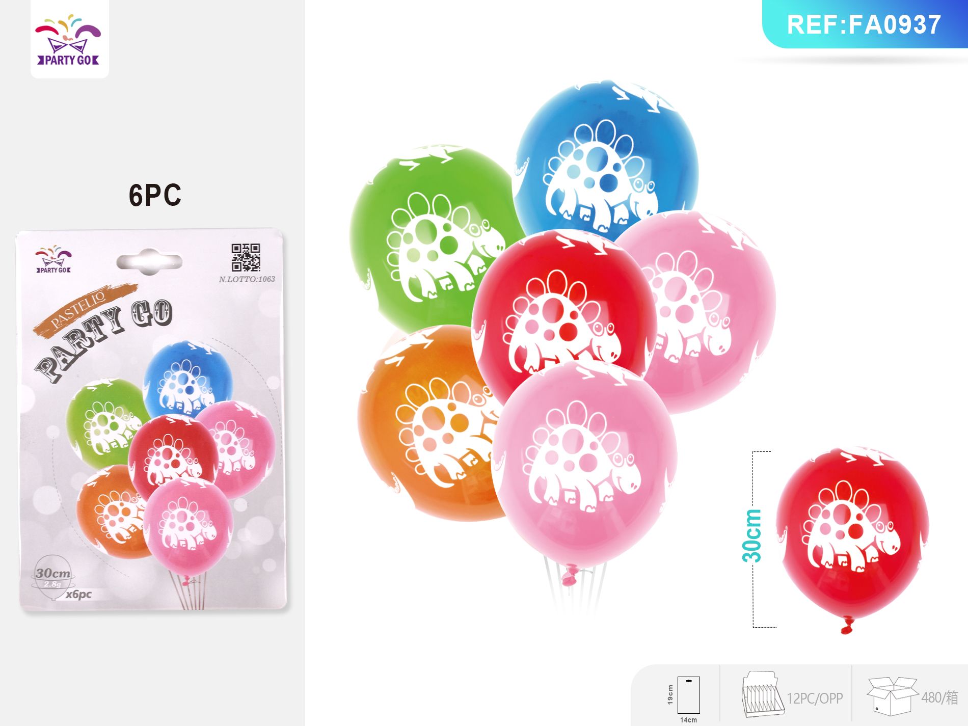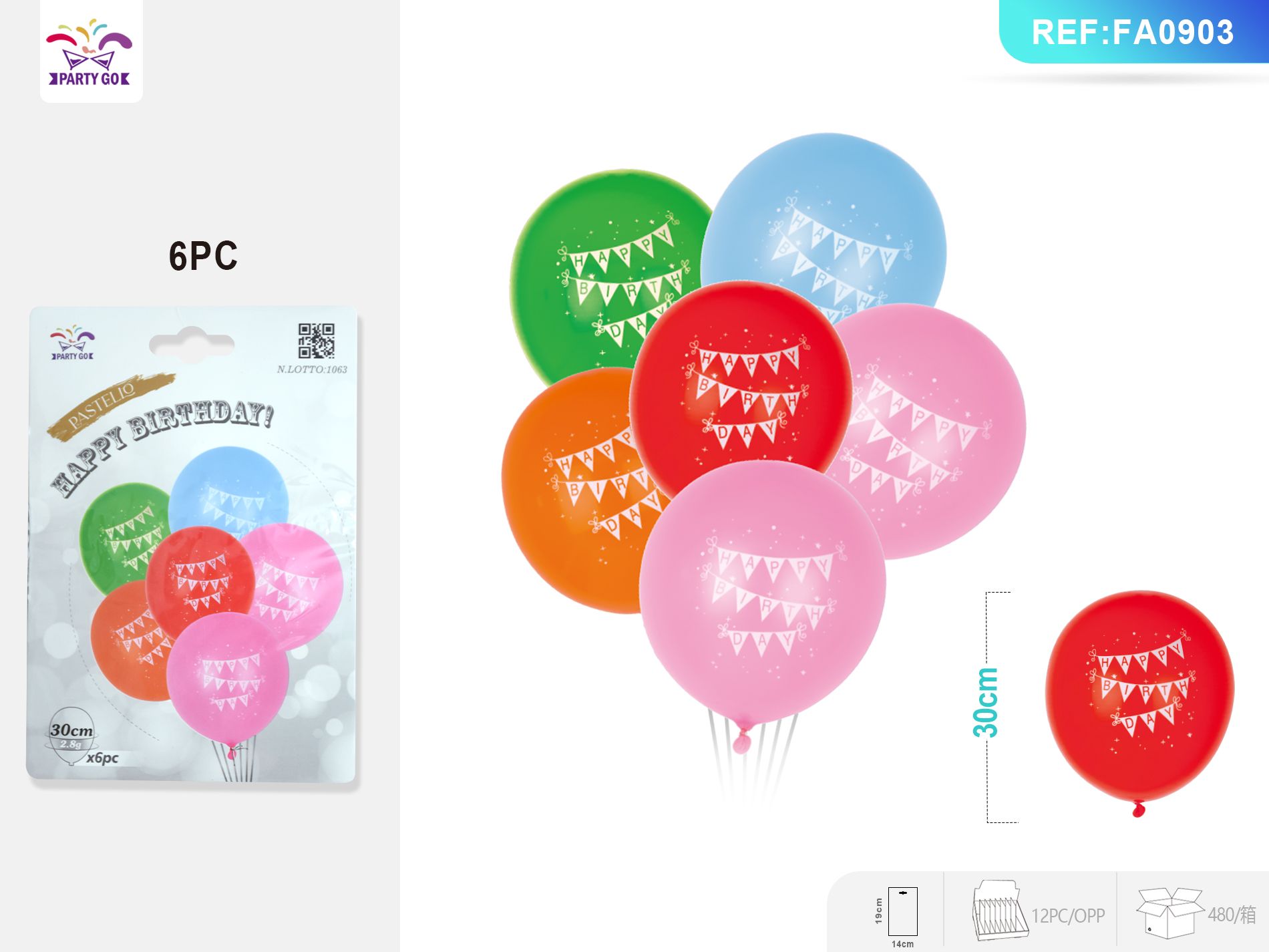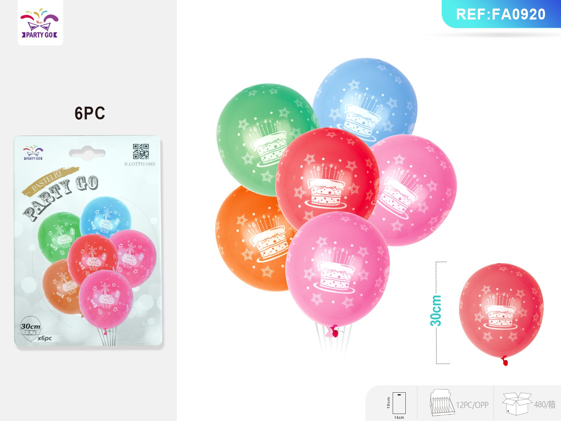 03-A4-12 cali 2,8 g 6 szt. Mieszany kolor, matowy, pięciostronny drukowany balon na ciasto - N