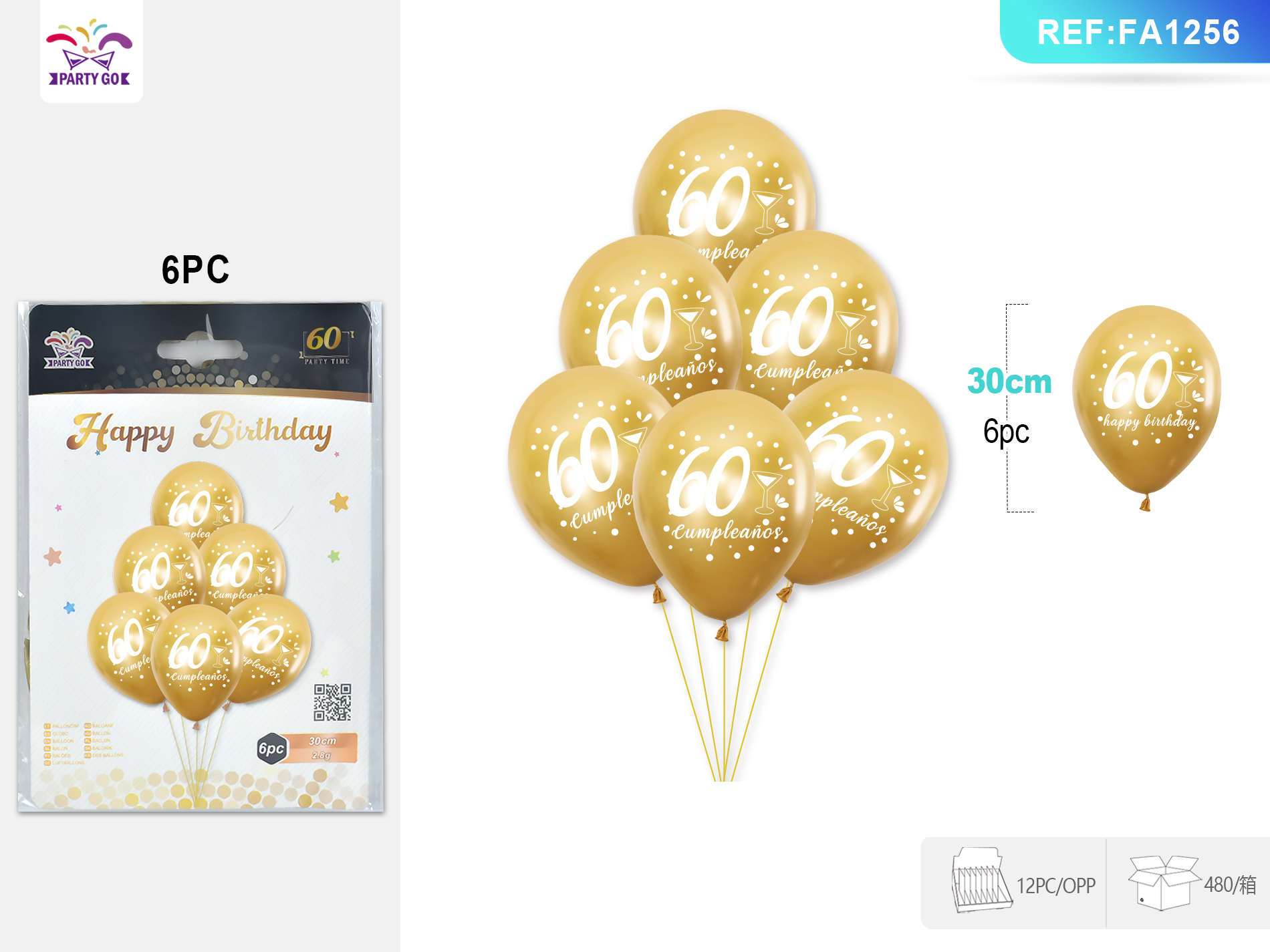 03-J3-60 Years Old Metallic Gold Latex Ball Set 30CM 6PCS