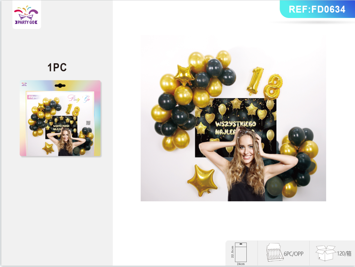 04-H2-Black Polish 18th Birthday Background Set (32 pieces)