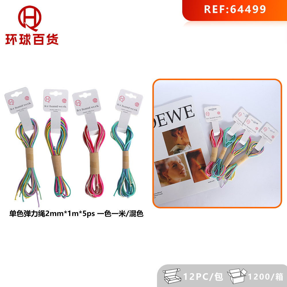 22-F2-Single Color Elastic Cord 2mm*1m*5ps/Mixed Colors
