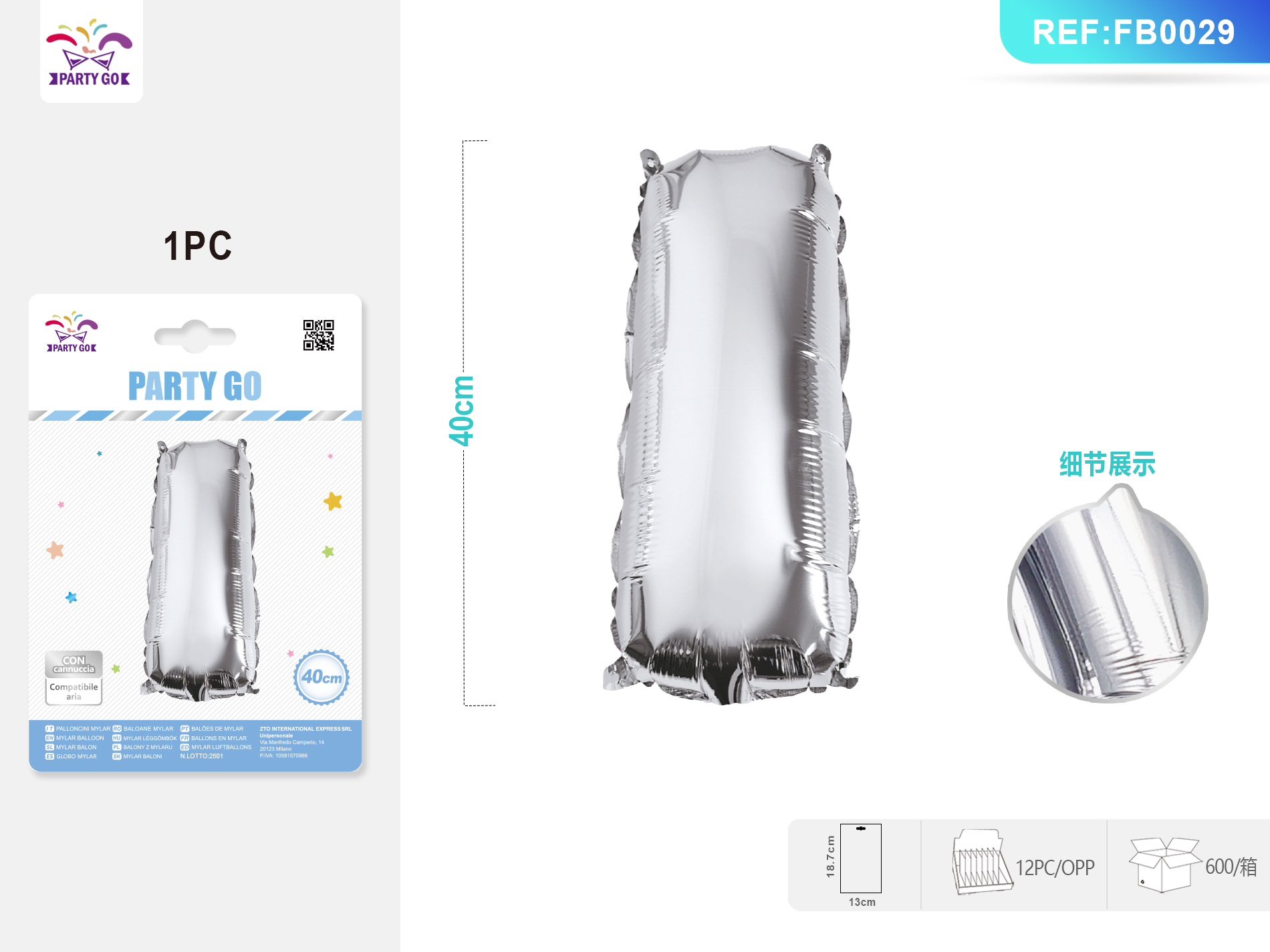 01-P3-Silver Aluminum Foil Balloon, Letter I, 40CM