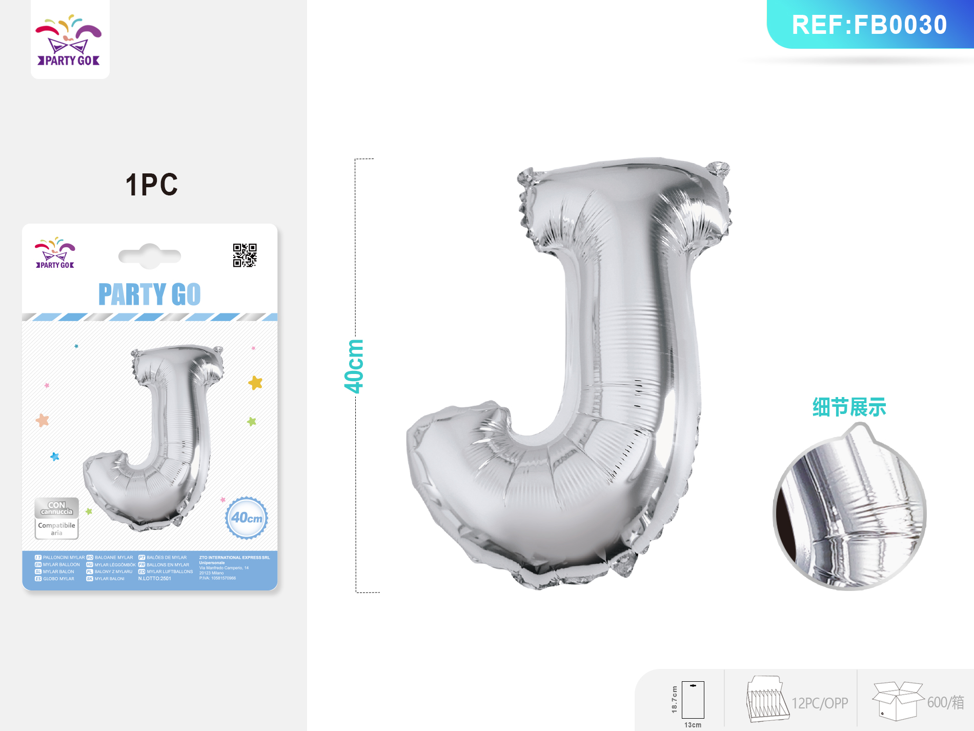01-P3-Silver Aluminum Foil Balloon, Letter J, 40CM