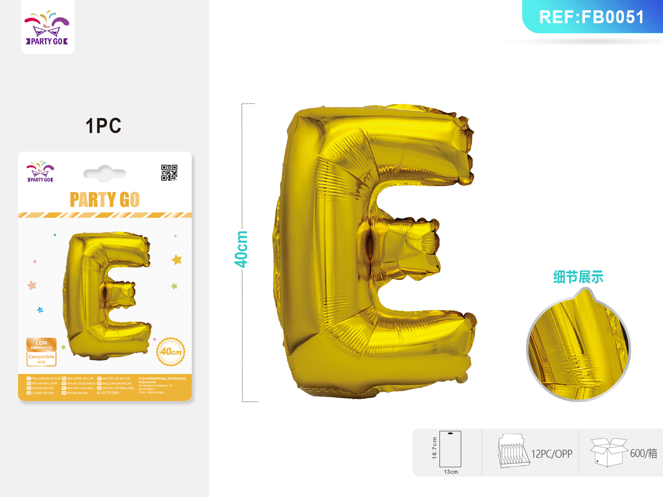 01-O1-Gold Aluminum Foil Balloon, Letter E, 40CM