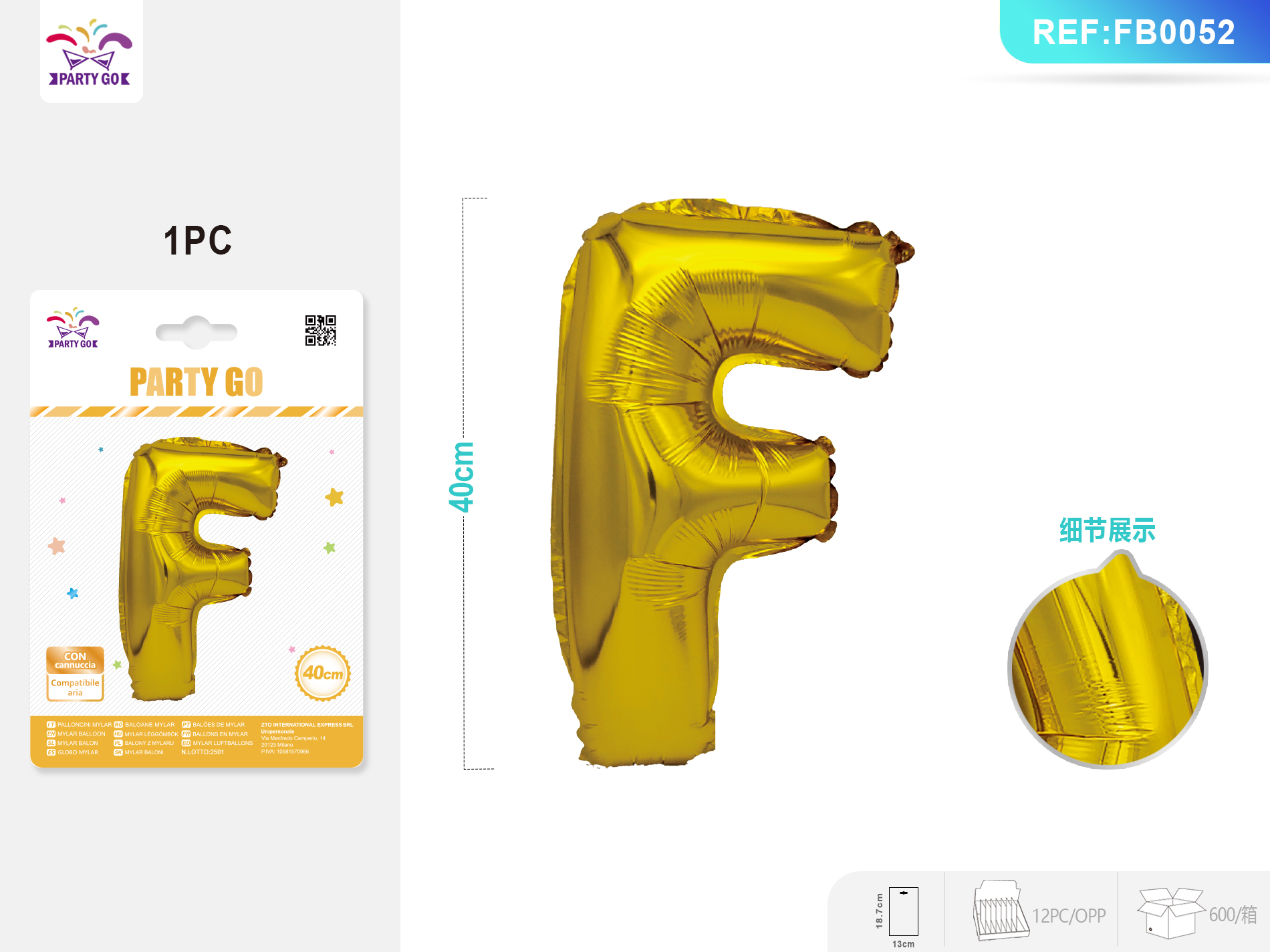 01-O1-Gold Aluminum Foil Balloon, Letter F, 40CM