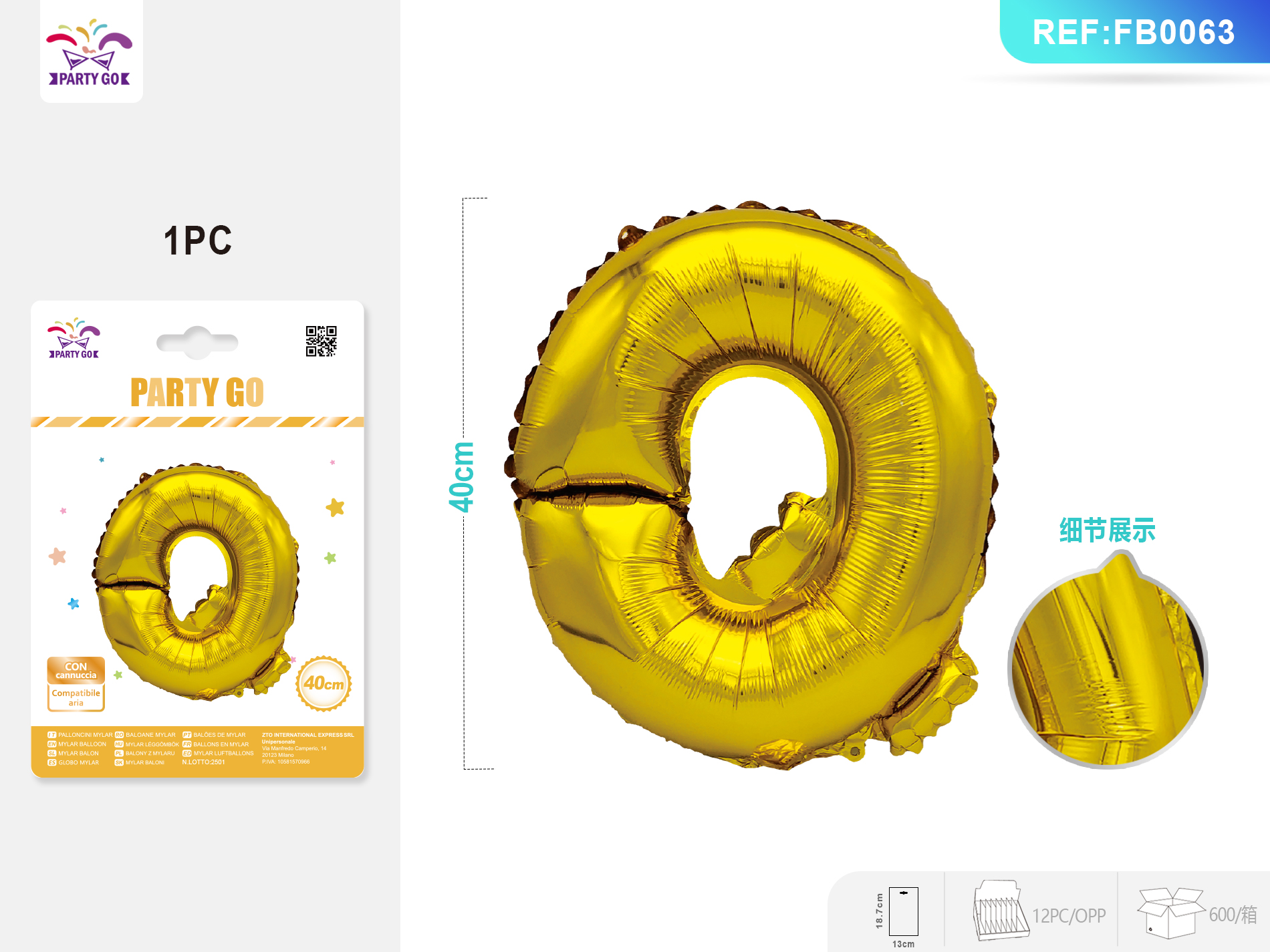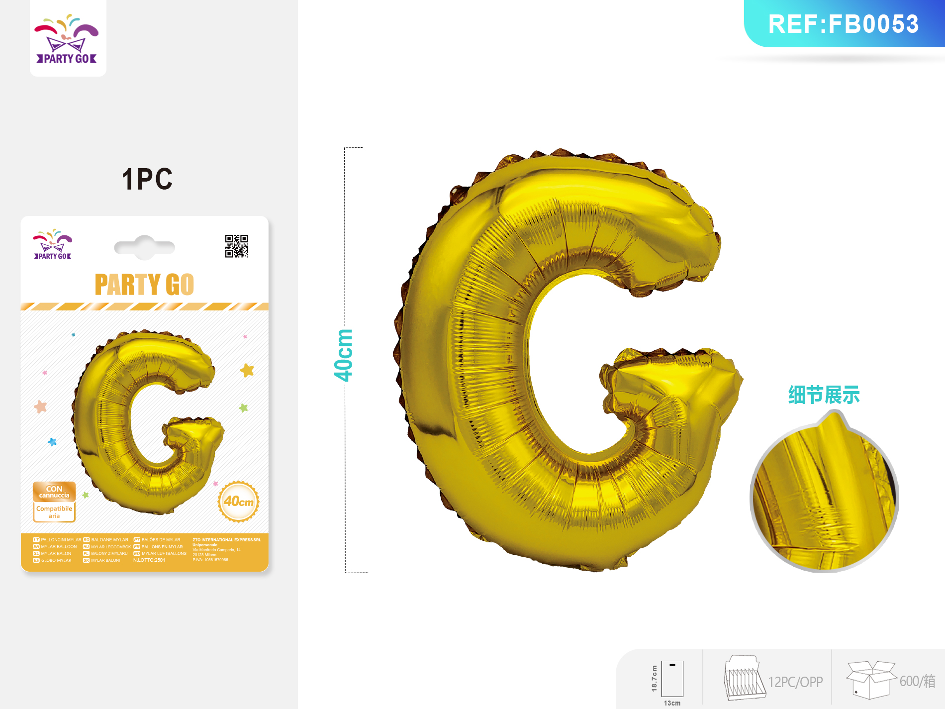 01-Q1-Gold Aluminum Foil Balloon, Letter P, 40CM