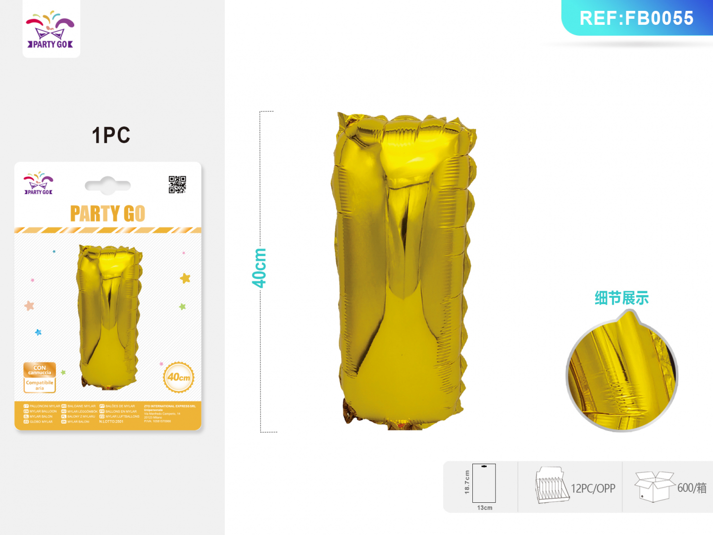 01-P1-Gold Aluminum Foil Balloon, Letter I, 40CM