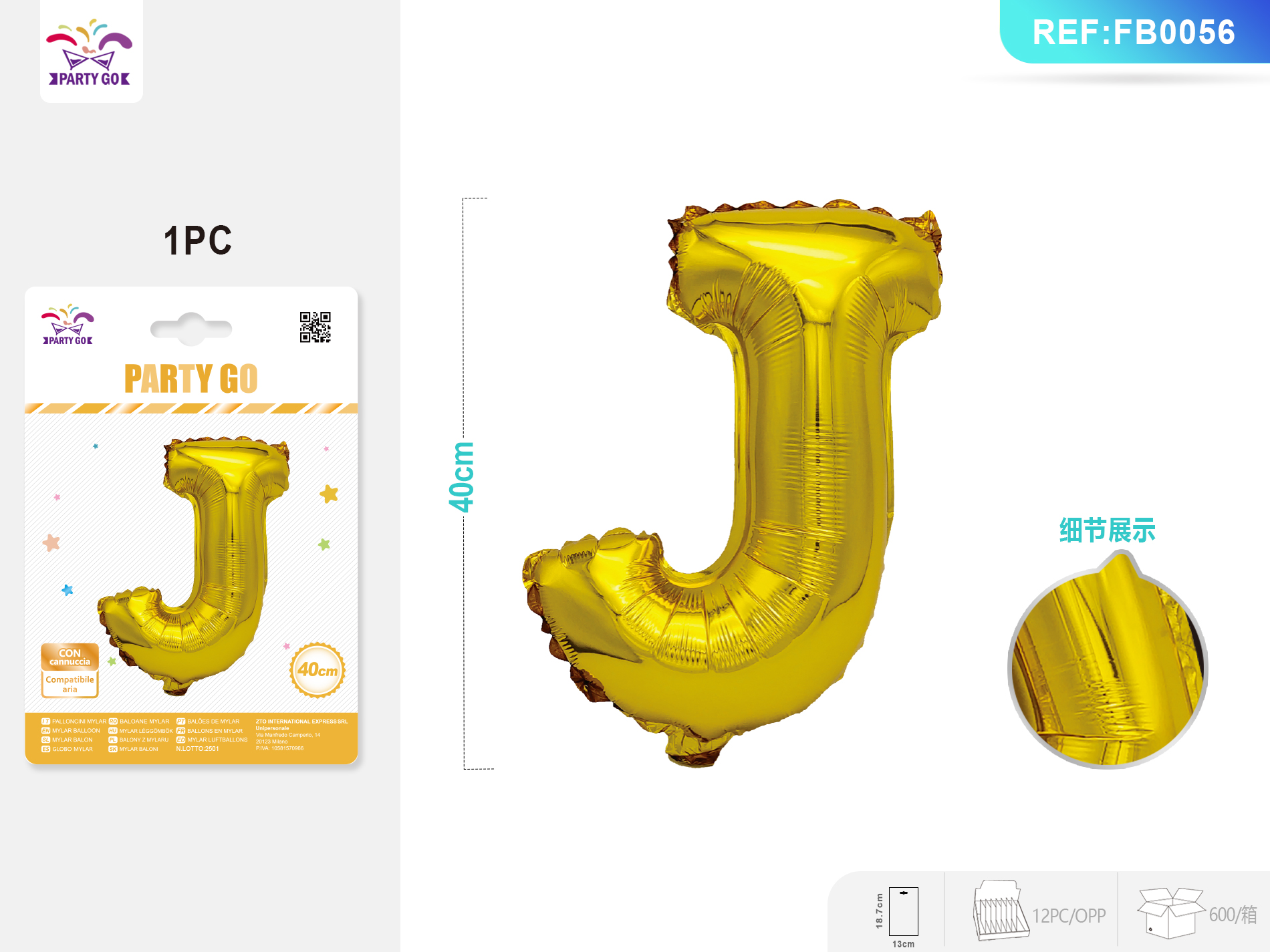 01-P1-Gold Aluminum Foil Balloon, Letter J, 40CM