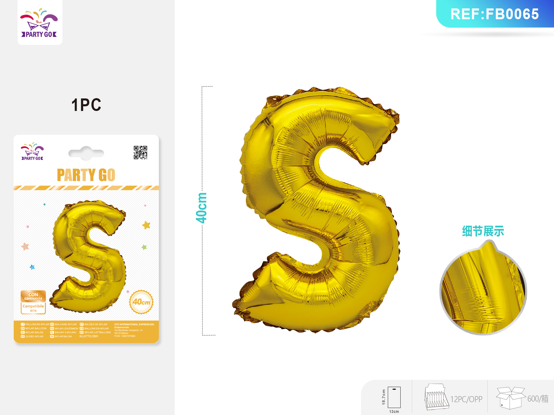 01-R1-Gold Aluminum Foil Balloon, Letter S, 40CM