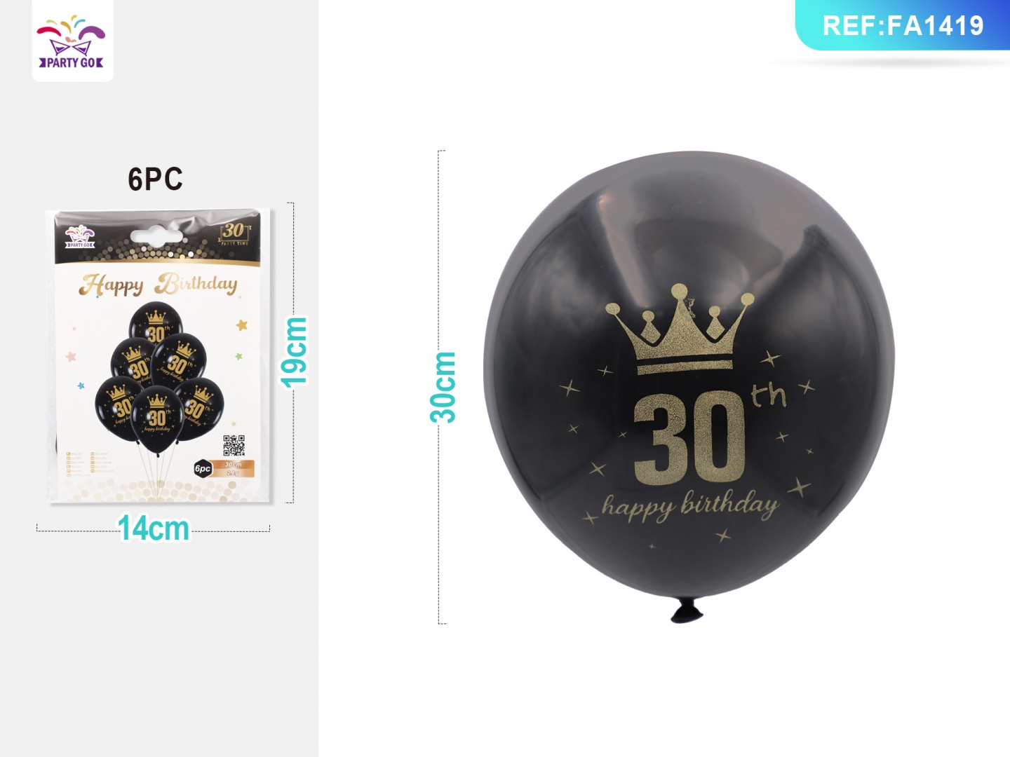 03-K4-30 Years Old Black Gold Latex Balloon Set, 30CM, 6pcs