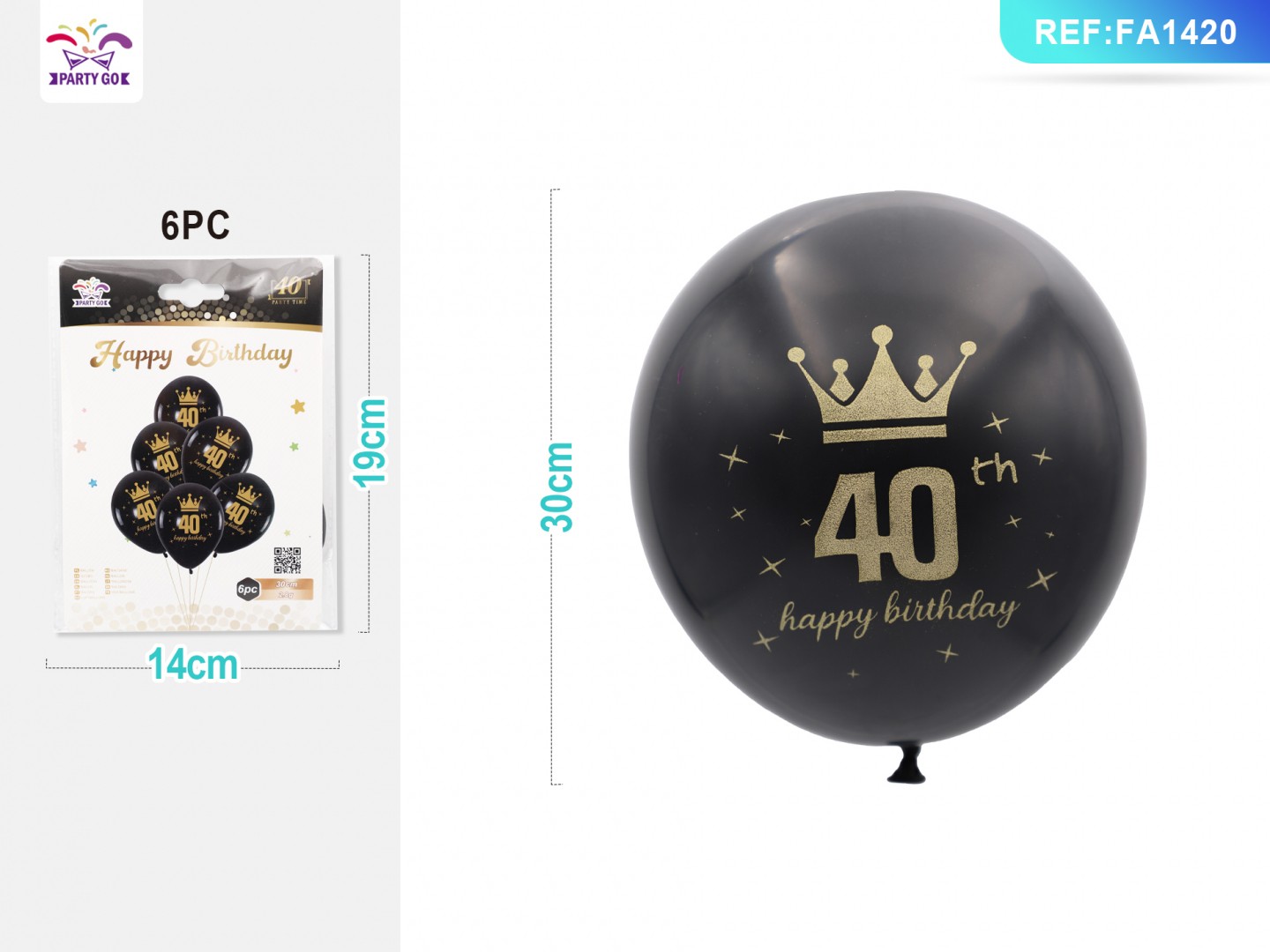 03-K4-40 Years Old Black and Gold Latex Balloon Set 30CM 6PC