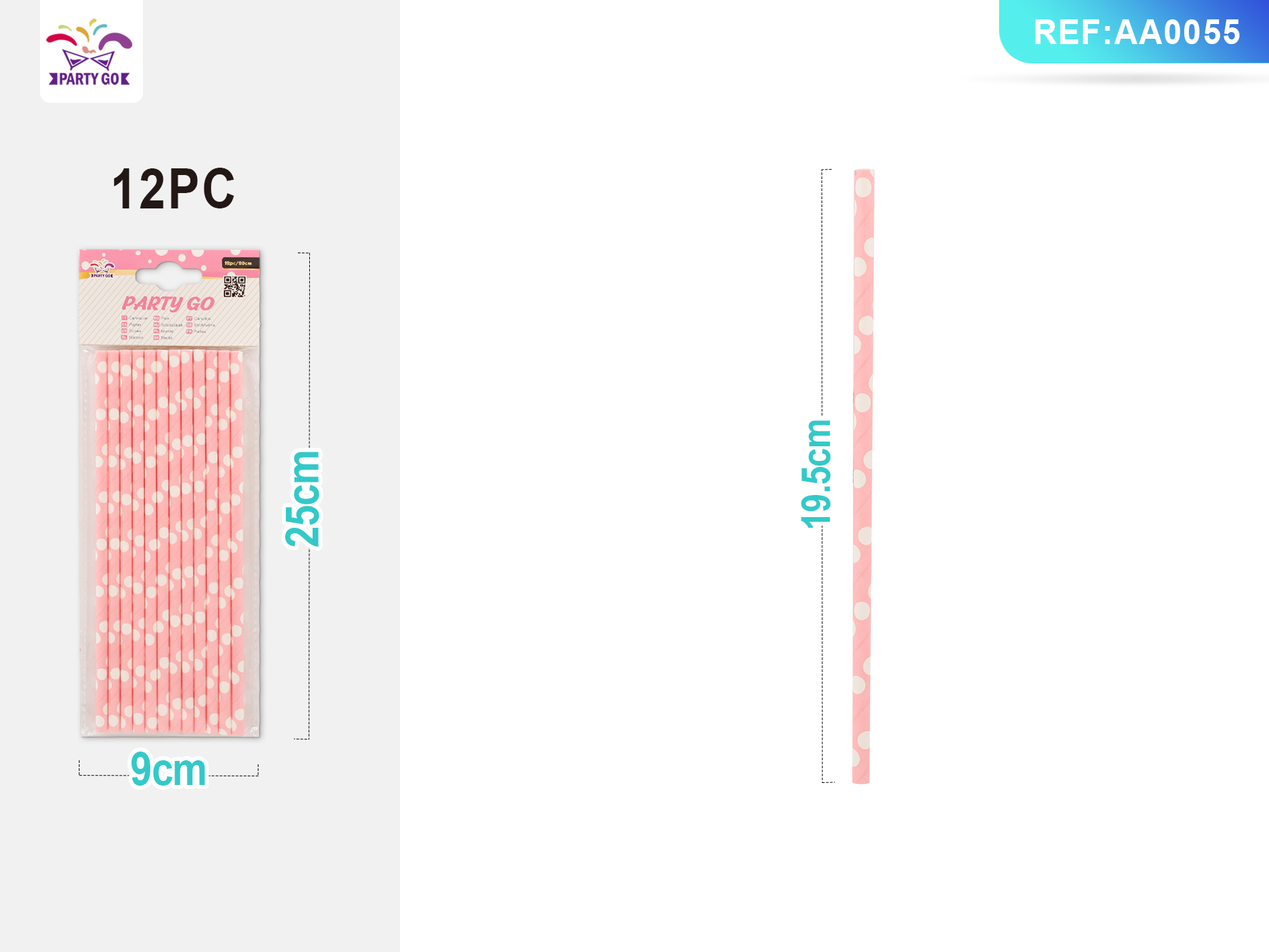 07-N1-Pink Polka Dot Straw 0.6*19.5CM 12pcs