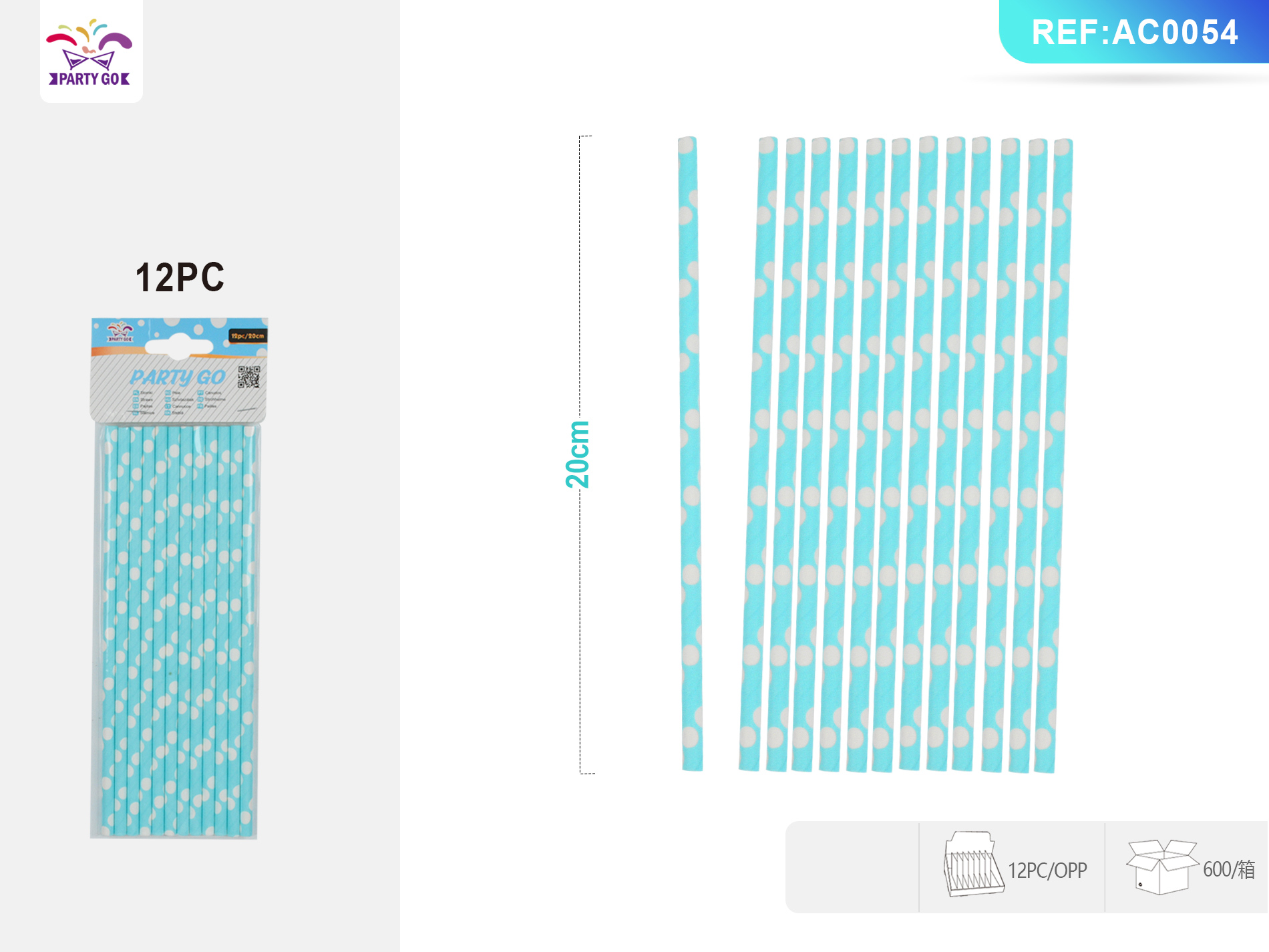 07-O1-Blue Polka Dot Straw 0.6*19.5CM 12pcs