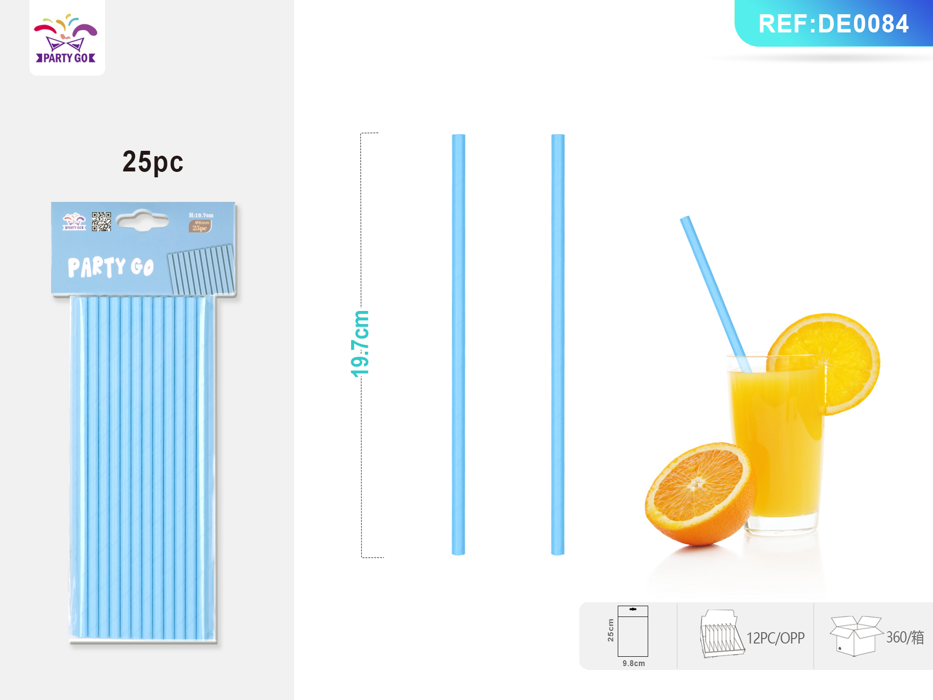 07-N2-Pure Blue Dress Straw 19.7cm 25pz