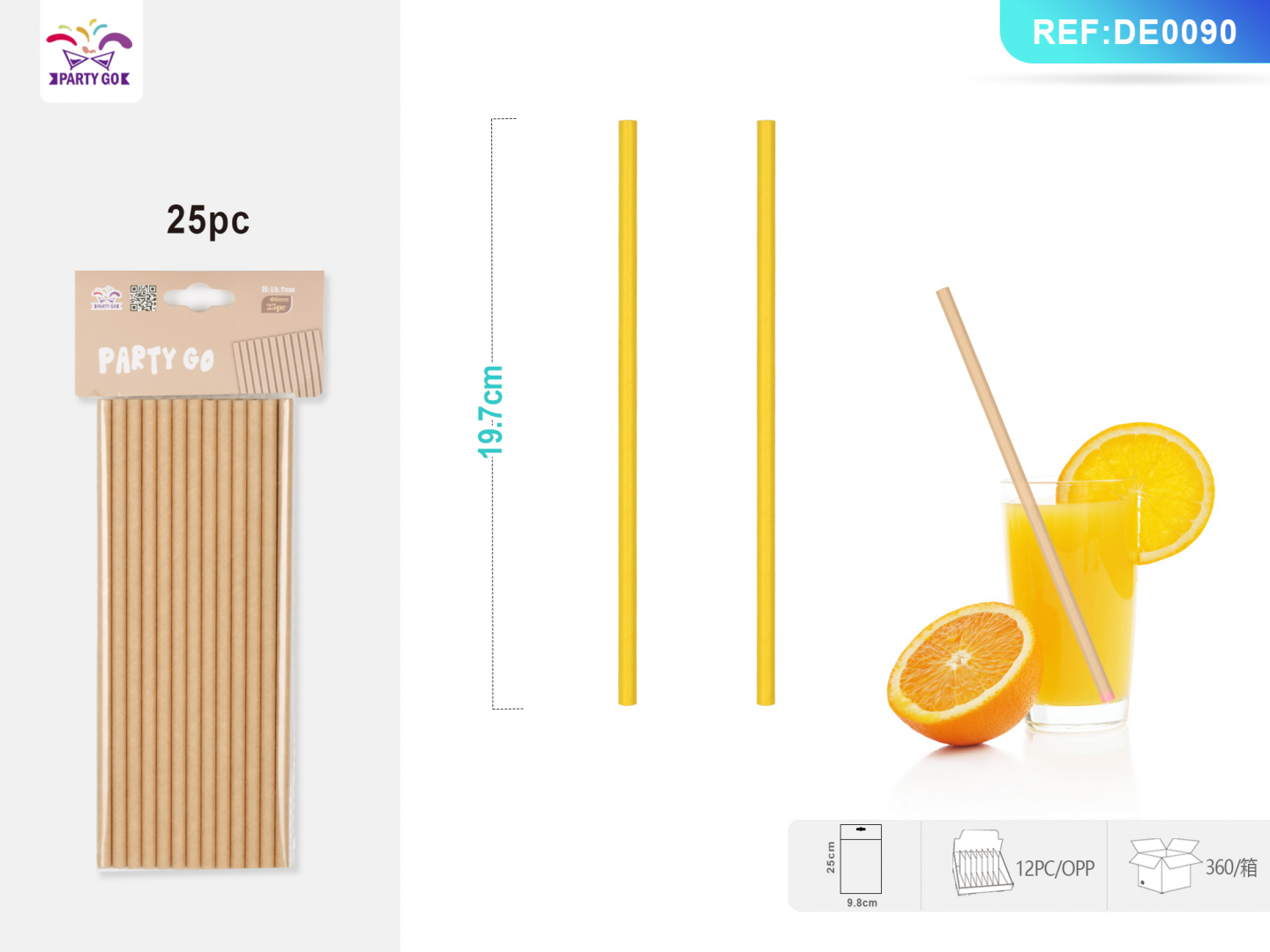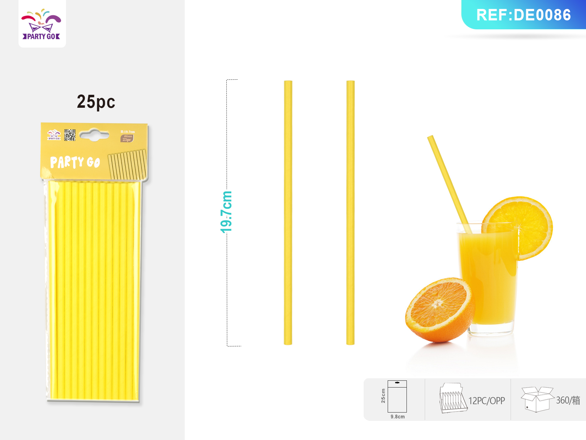 07-O2-Pure Yellow Dress Straw 19.7cm 25pz