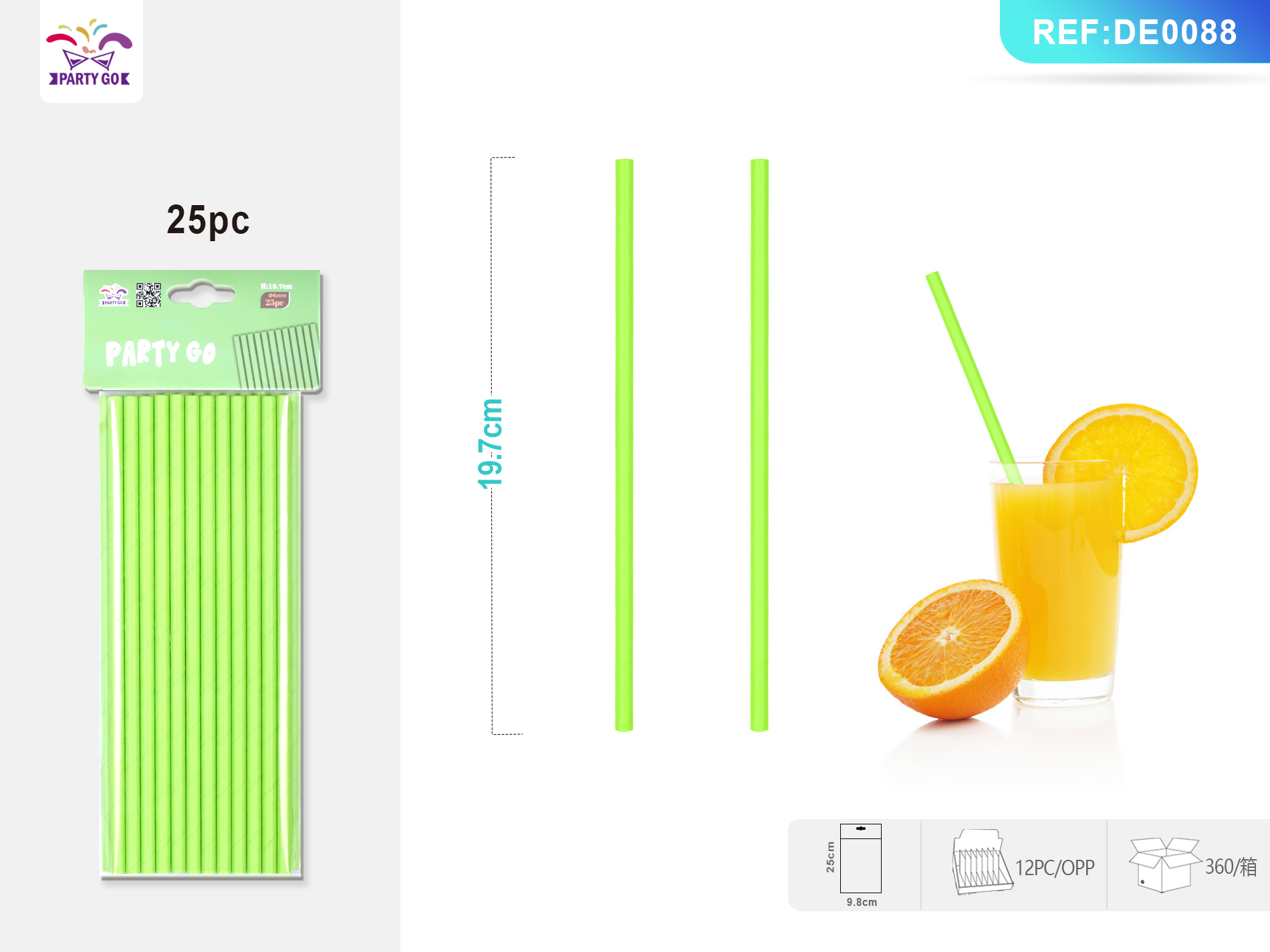 07-O1-Pure Green Straw, 19.7cm, 25pcs