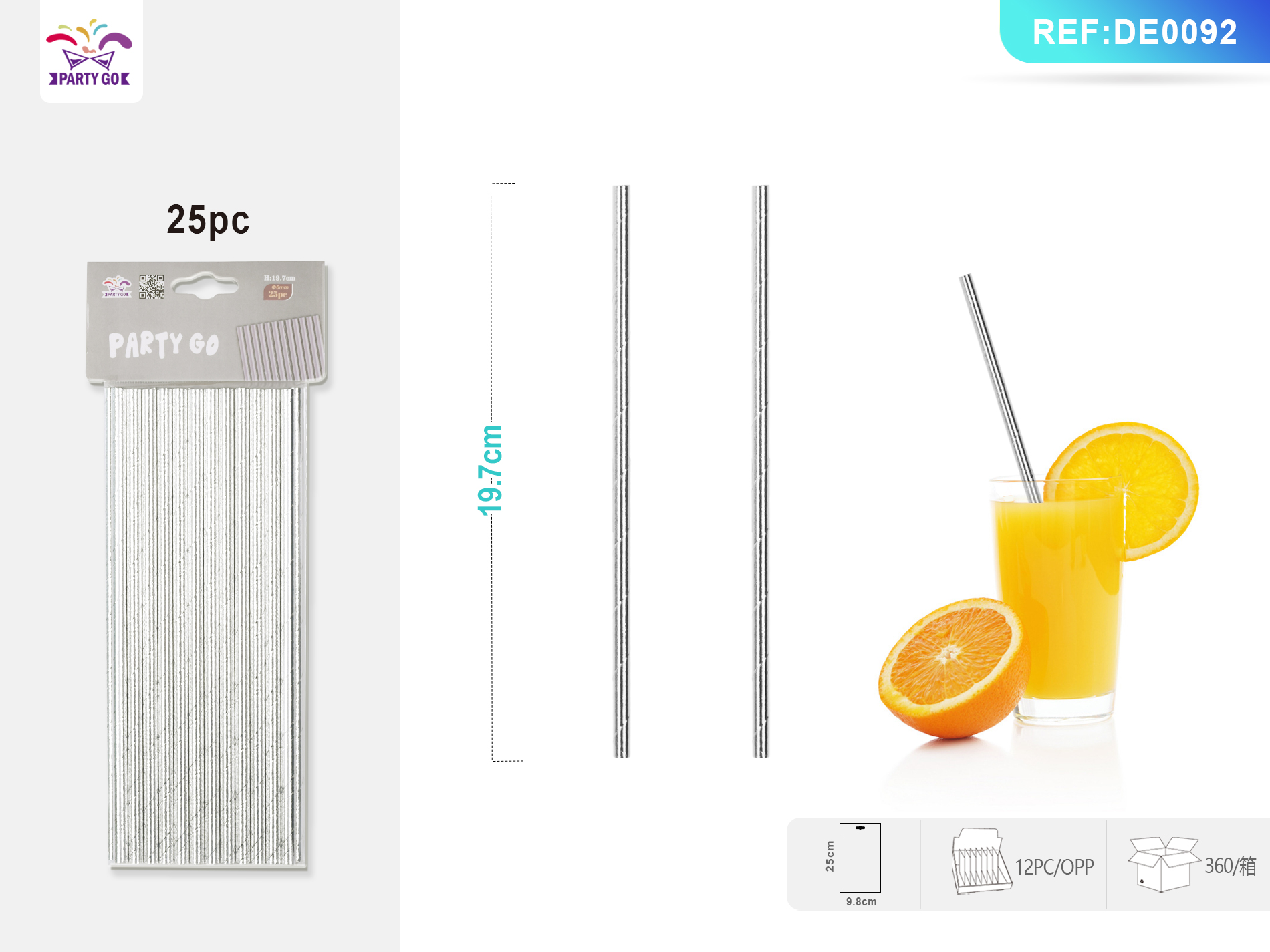 07-N2-Aluminum Foil Pure Silver Straw, 19.7cm, 25pcs