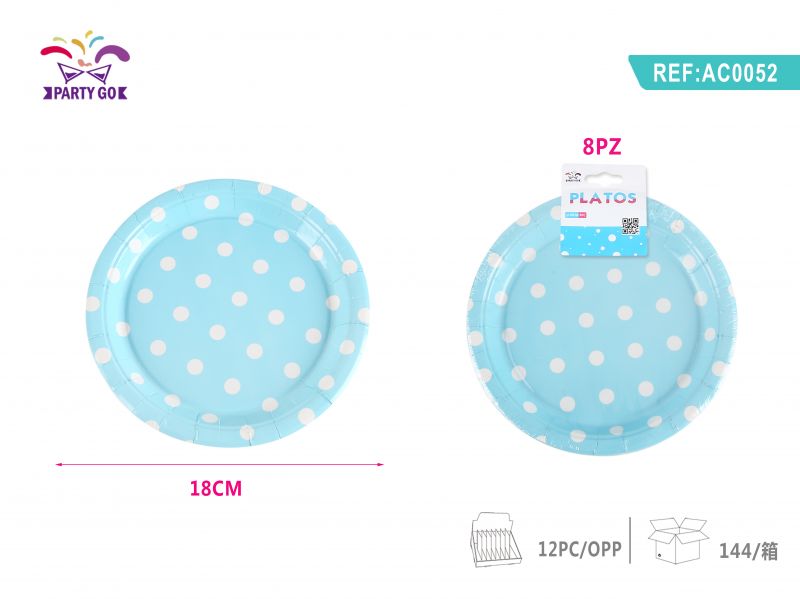 7-inch blue polka dot paper tray �� 18CM 8pcs