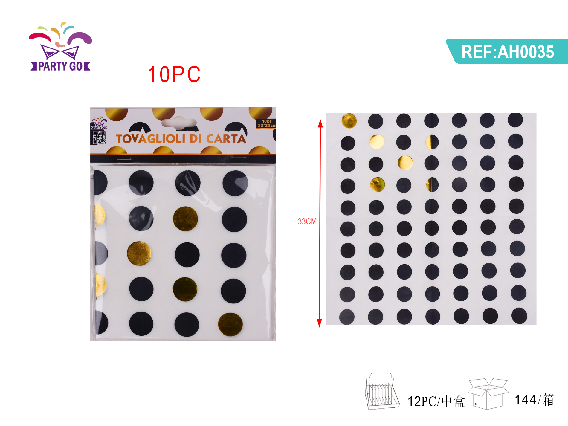 Gold foil black polka dot tissues, 33*33CM, 10pcs