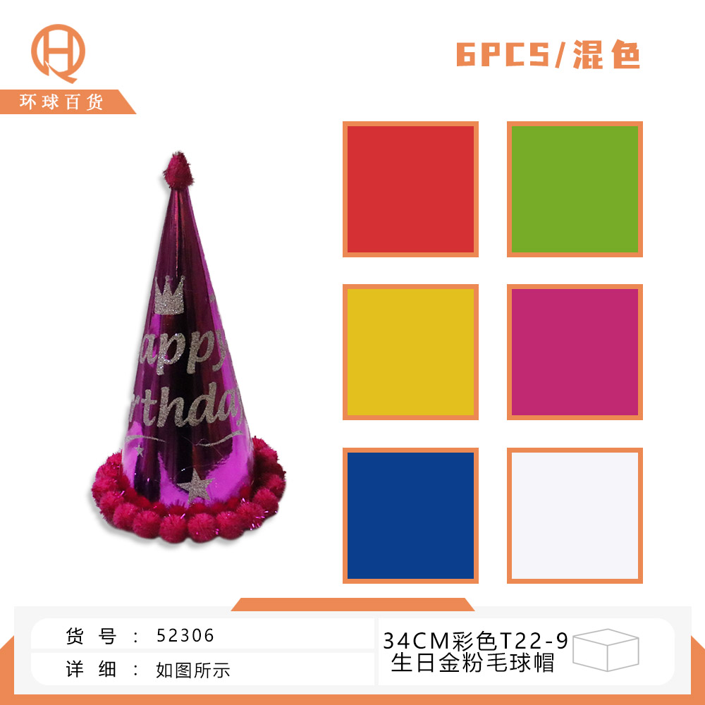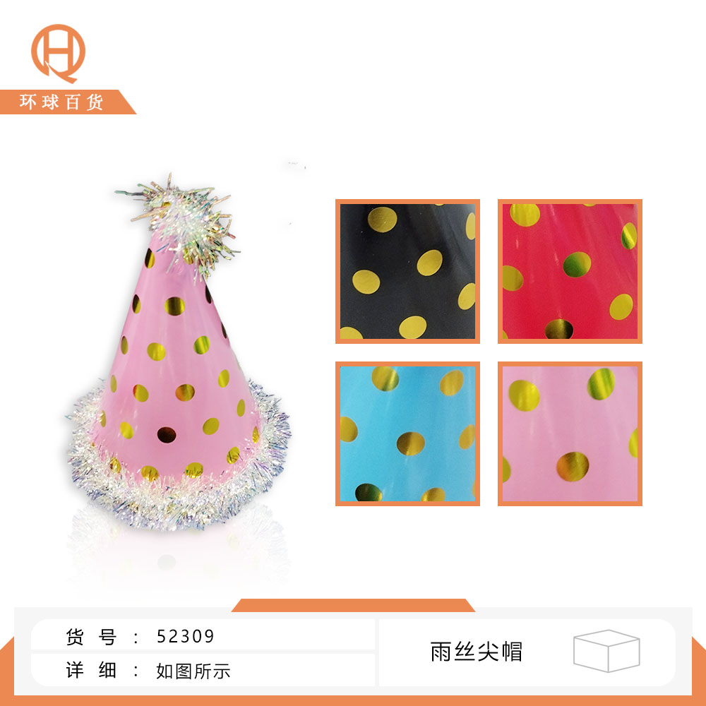 06-E2-34cm: A hat with a small, colorful lace trim and sprinkled with gold powder