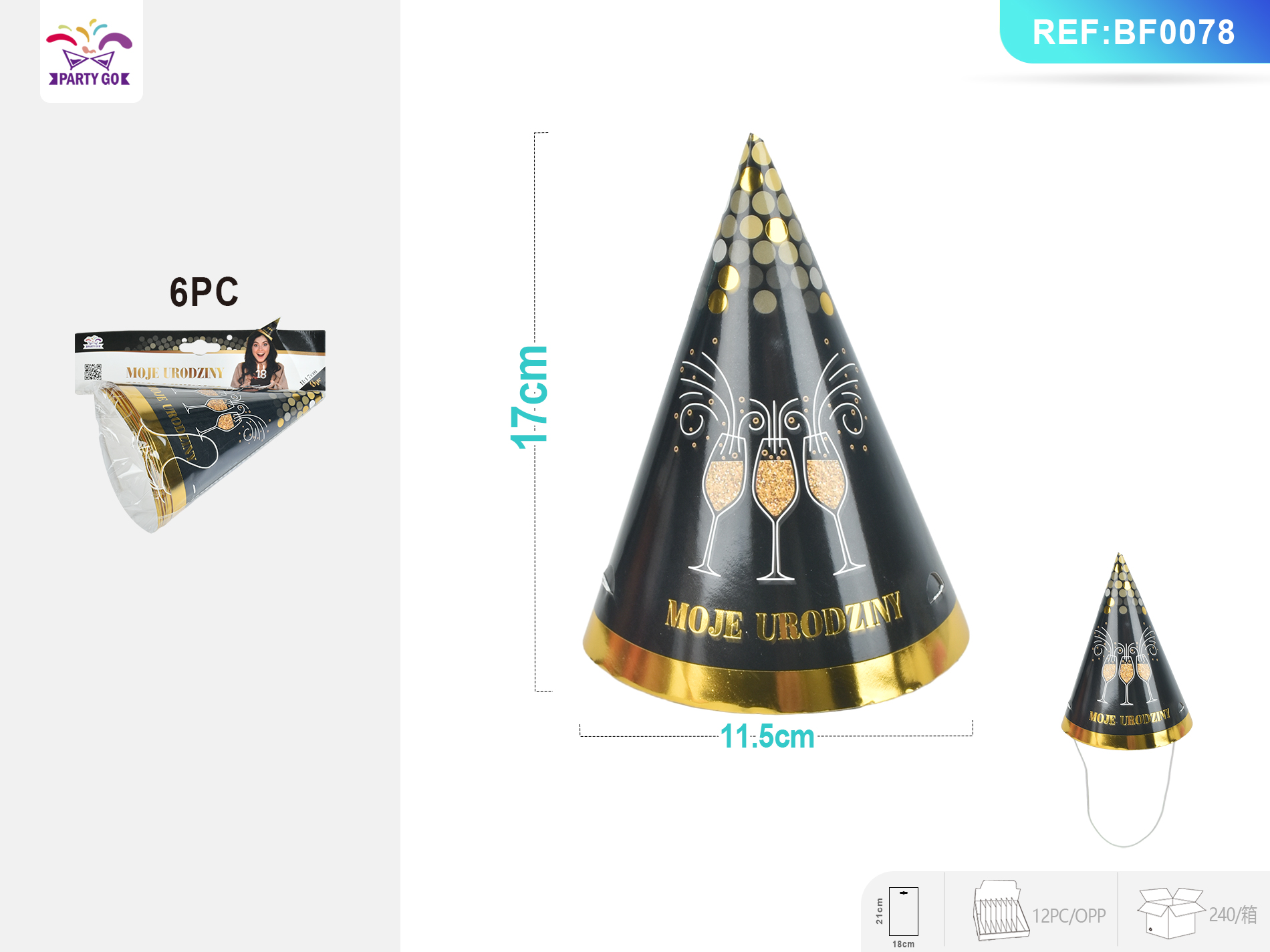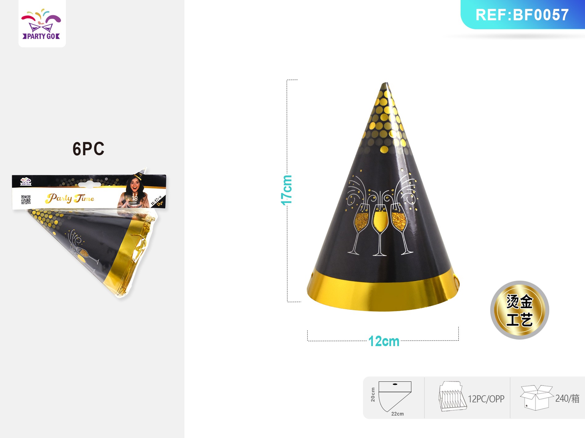 06-E1-18-Year-Old Series Gold-embossed Triangle Caps (17cm x 12cm) -6-Piece Set
