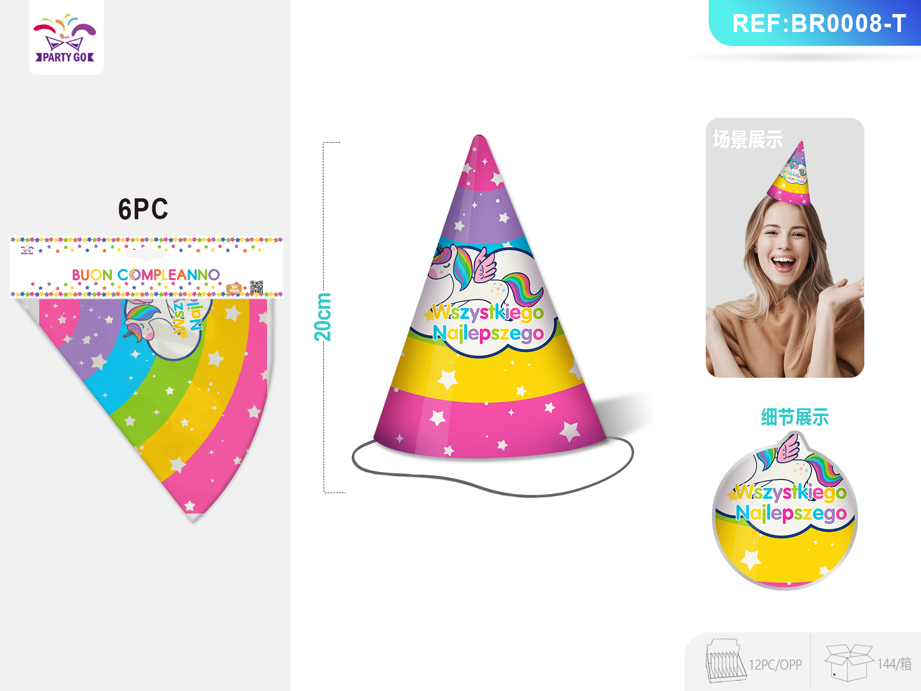 06-E1-Unicorn Series Birthday Hats 20cm 6pc