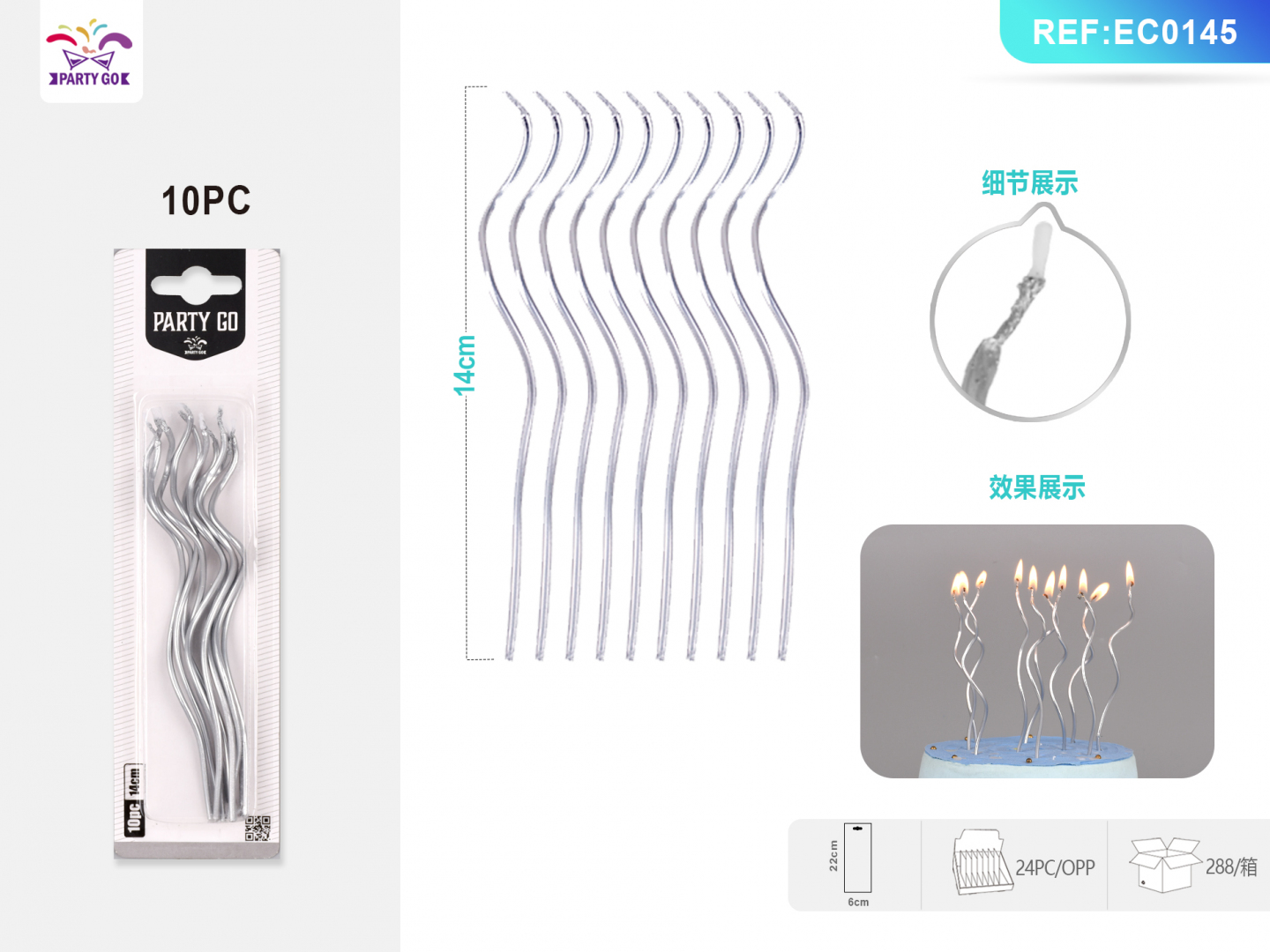 02-M1-14CM Posrebrzana świeca spiralna 10PZ