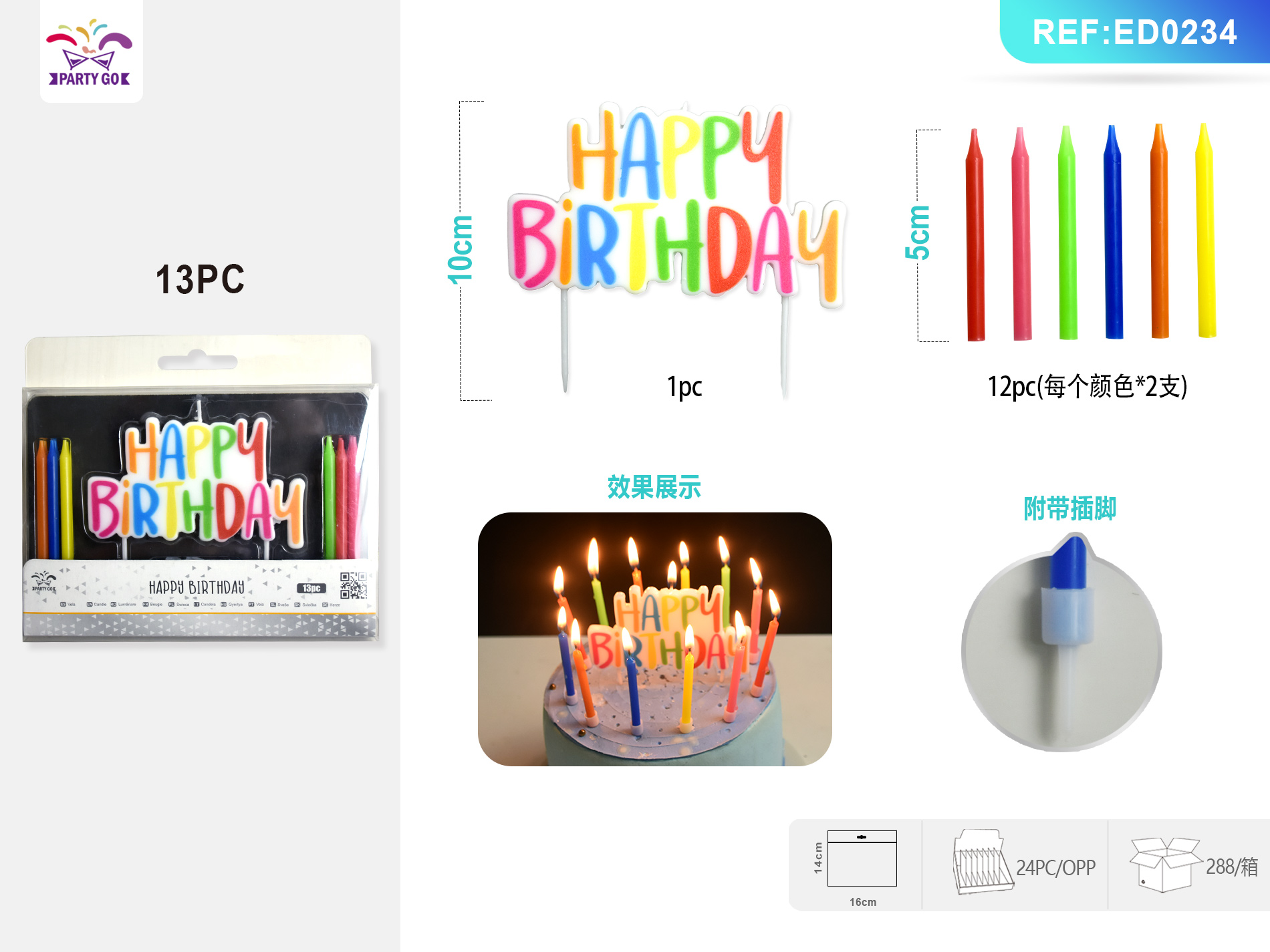 02-L3-Colored English Print Candle 13PC 33g-N