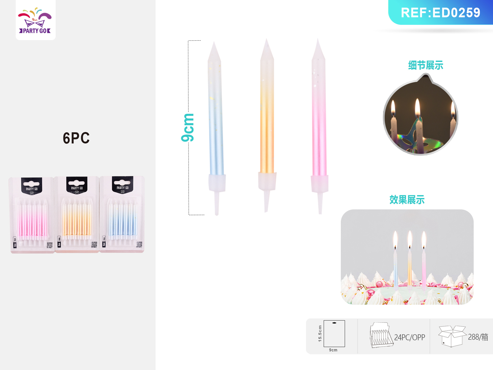 "02-N2-Gradient Candles 6pcs 9CM"