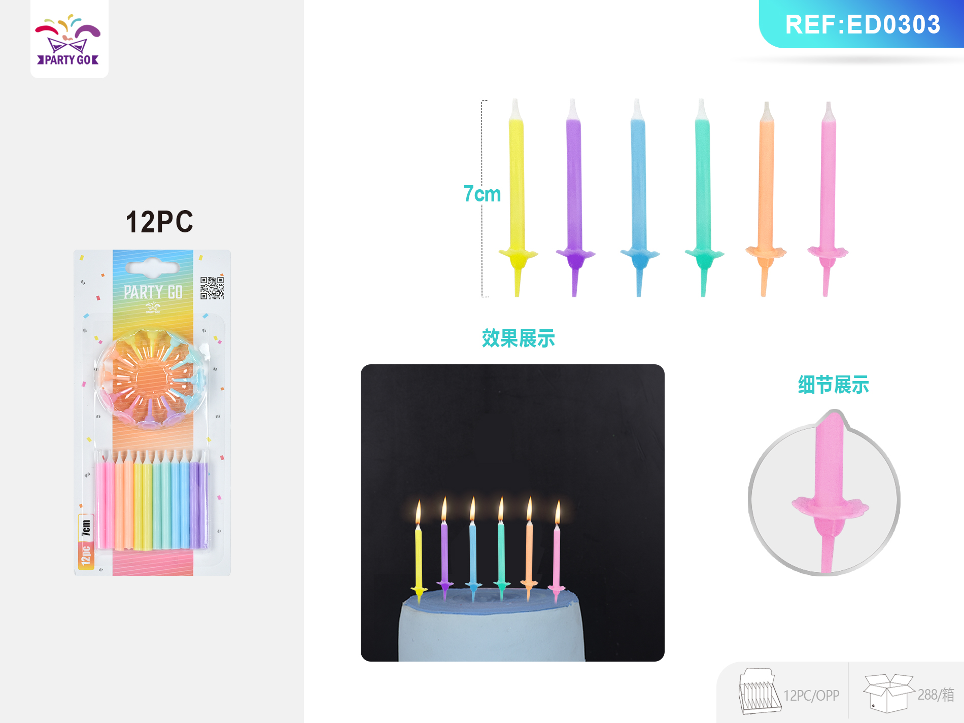 02-O2-Macaron Mixed Color Rod Candle with Flower Holder 8.5cm