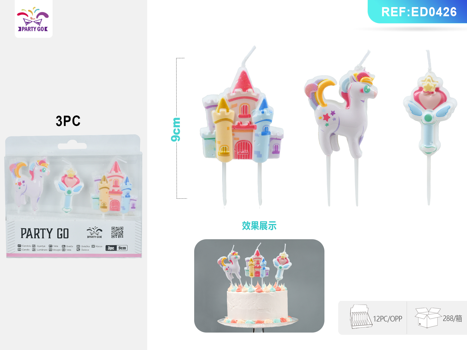 02-L3-Unicorn Castle-Shaped Candle (8cm, 3pcs)