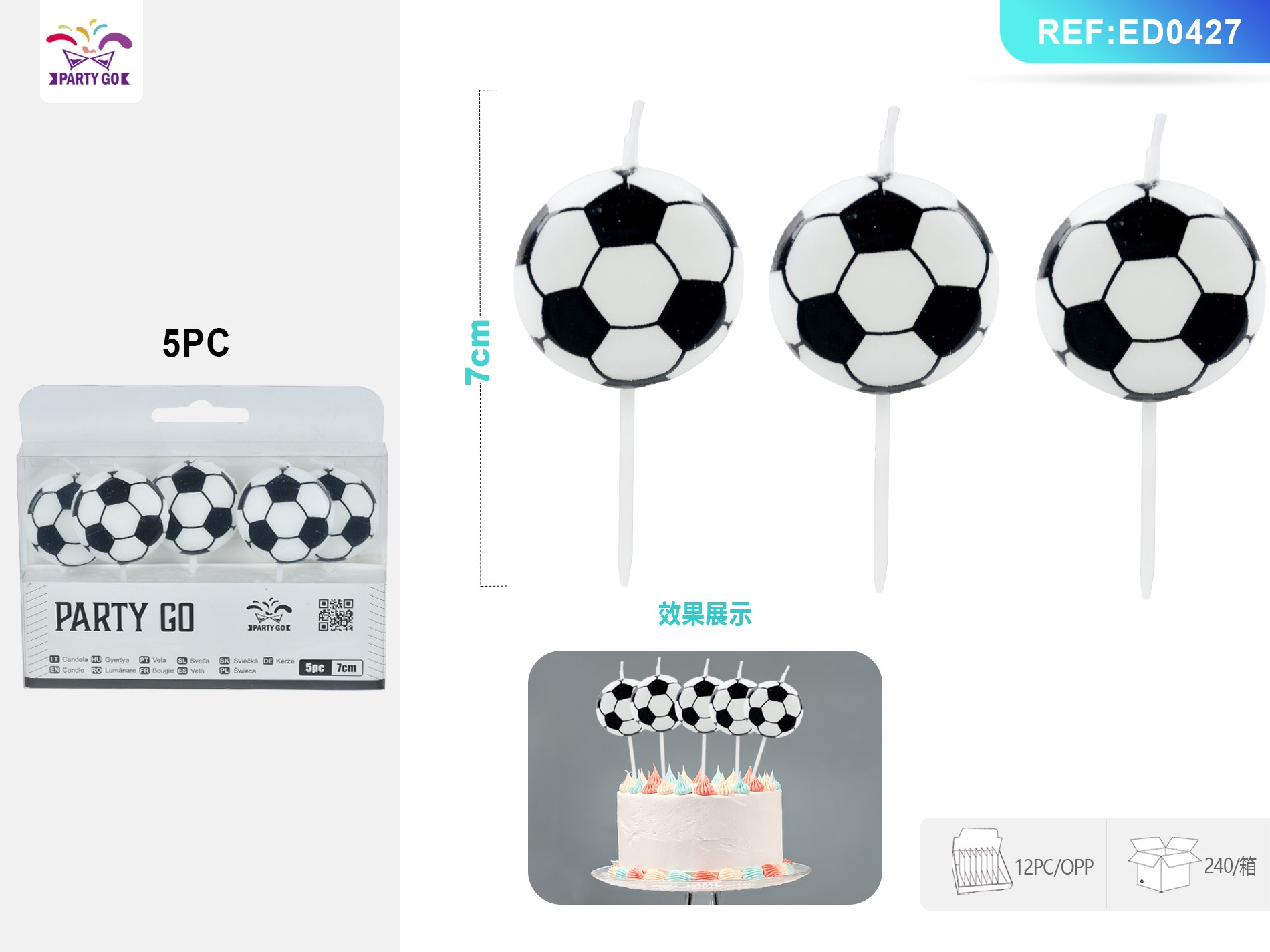 02-L4-Soccer-Shaped Candle (7cm, 5pcs)