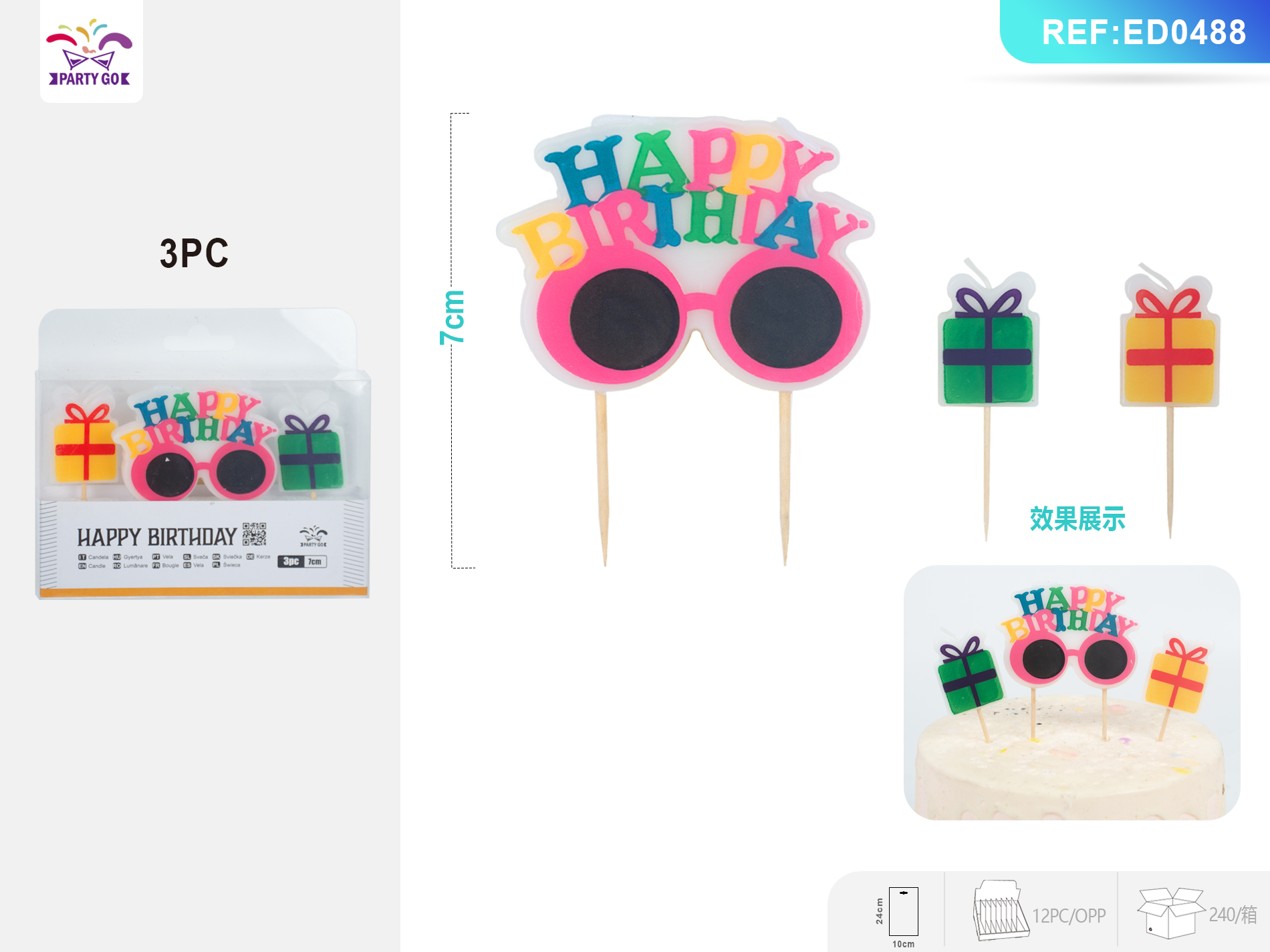 02-K4-HAPPY BIRTHDAY Glasses-Shaped Candle (7cm, 3pcs)