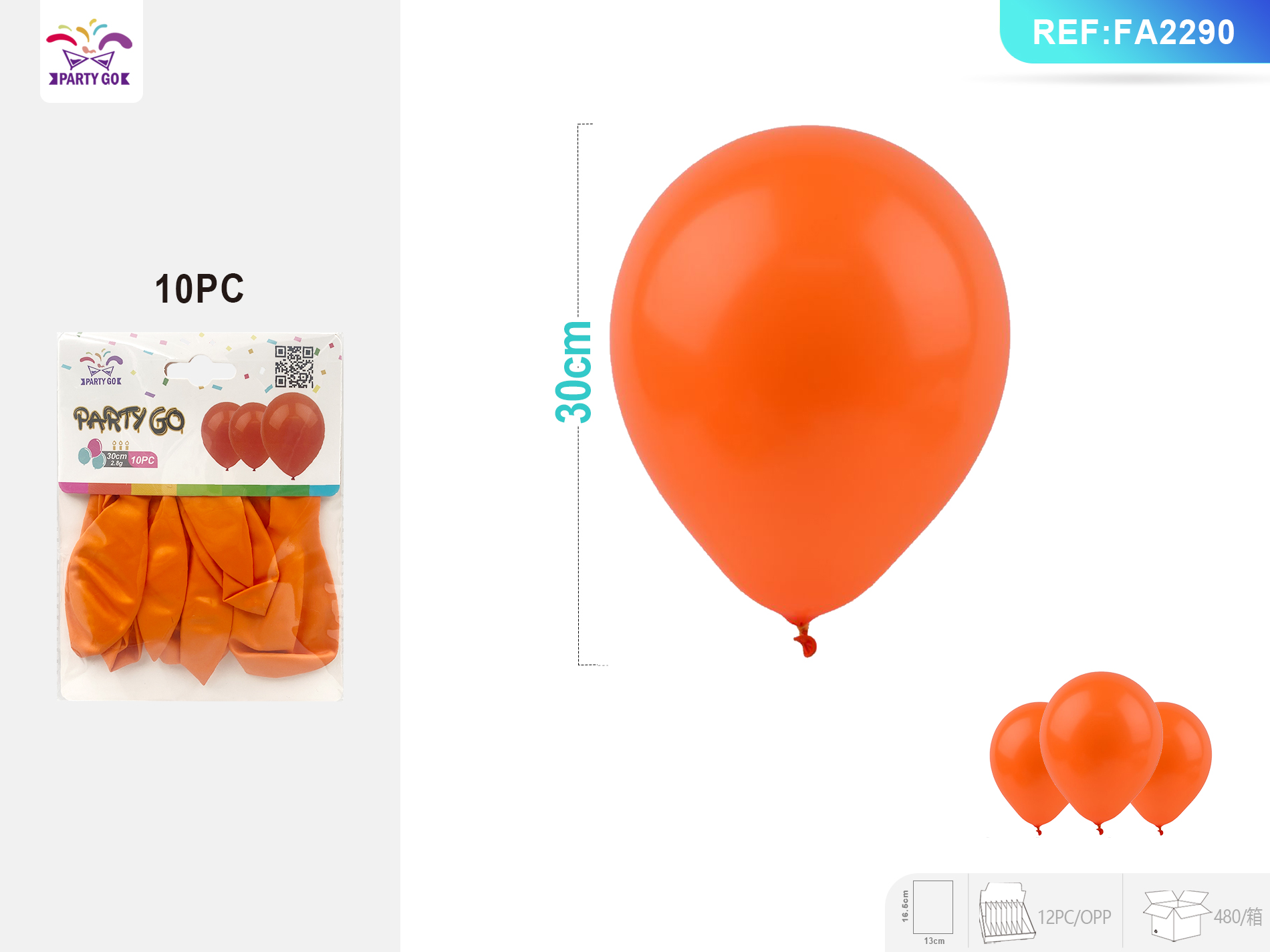03-D2-2.8G 30CM 10szt. Pomarańczowe matowe kulki lateksowe