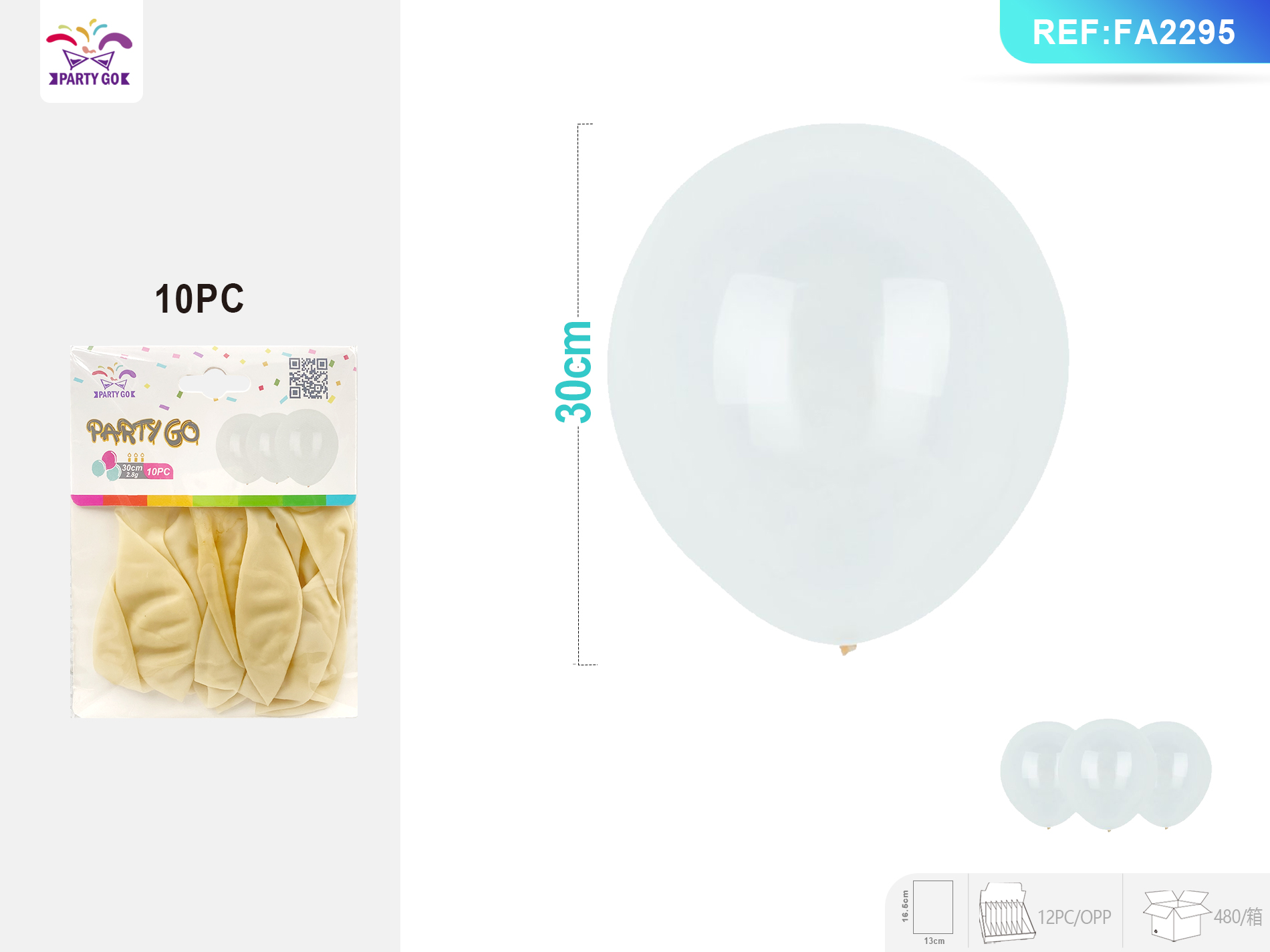 03-D2-2.8G 30CM 10szt. Przezroczyste matowe kulki lateksowe-N