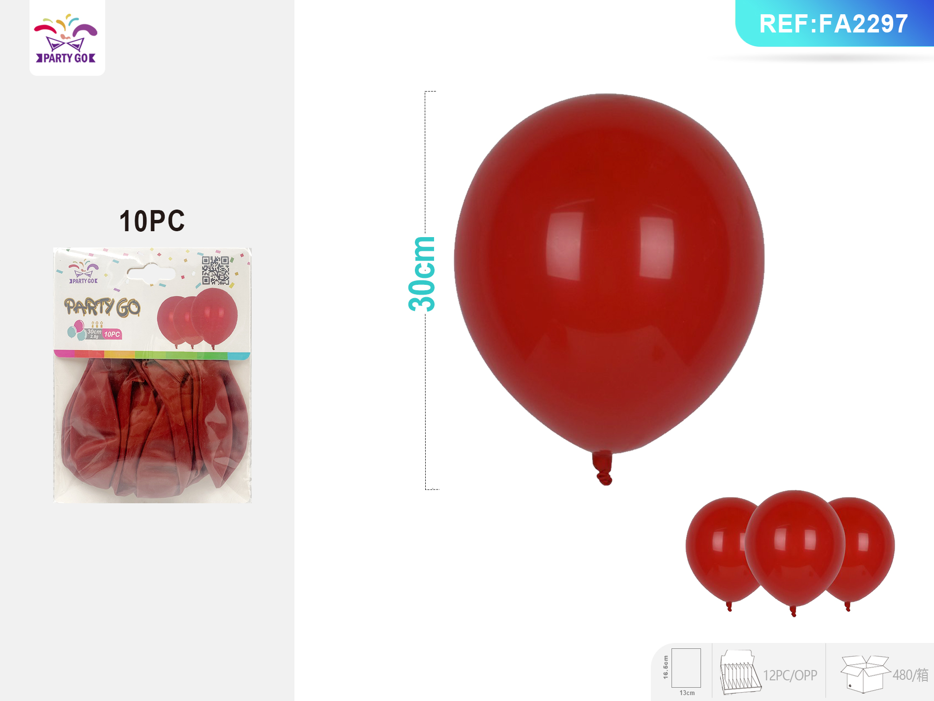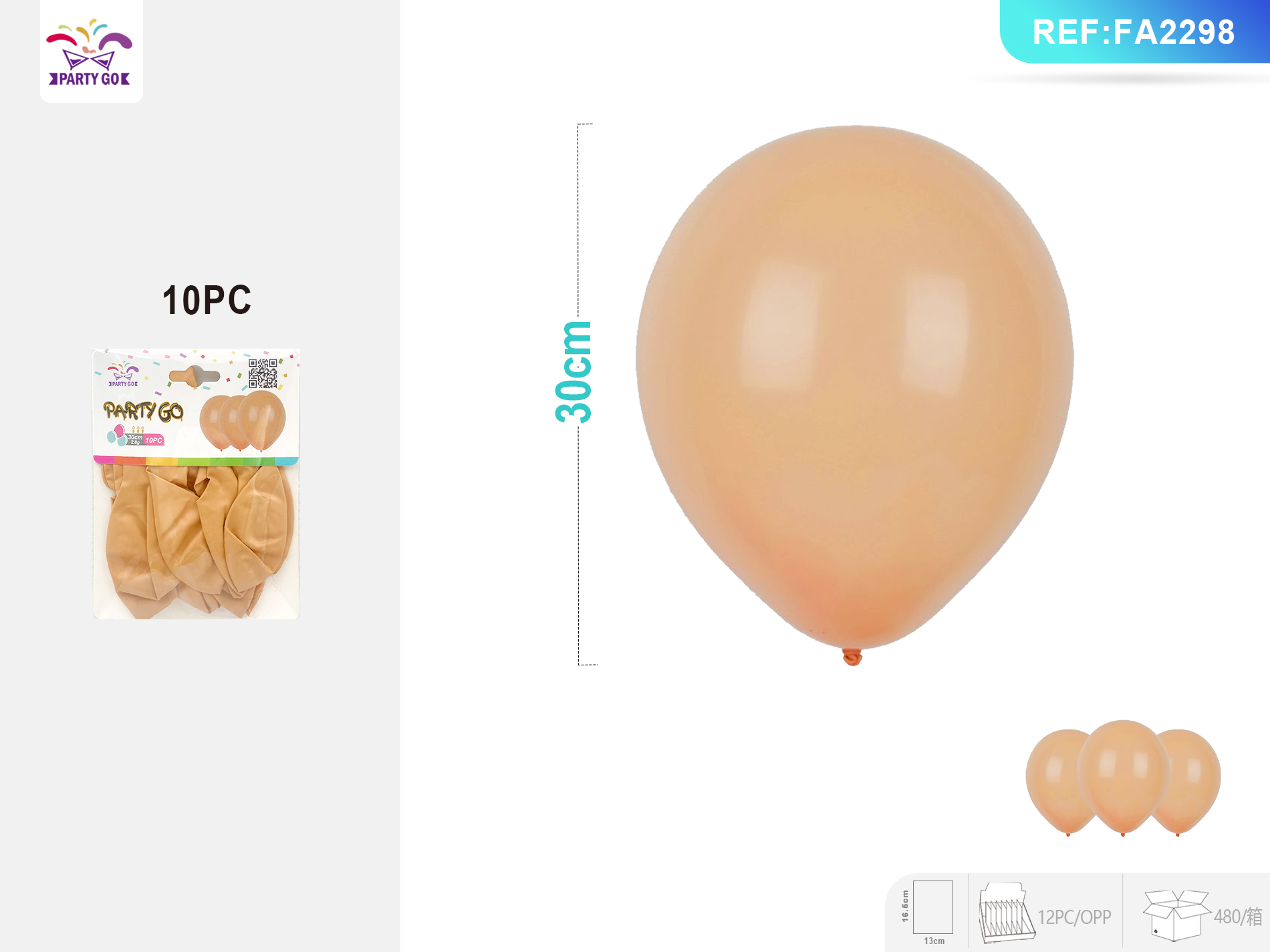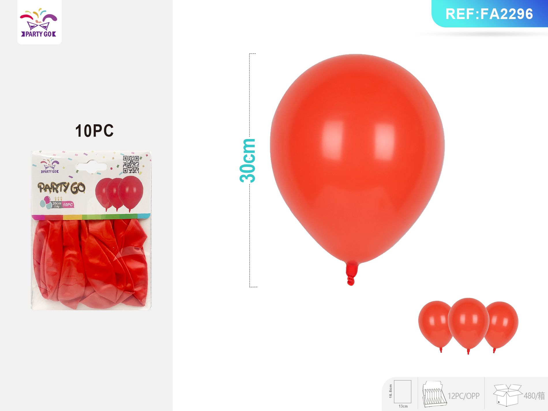 03-D1-2.8G 30CM 10 SZT. Koralowo-czerwone matowe kulki lateksowe