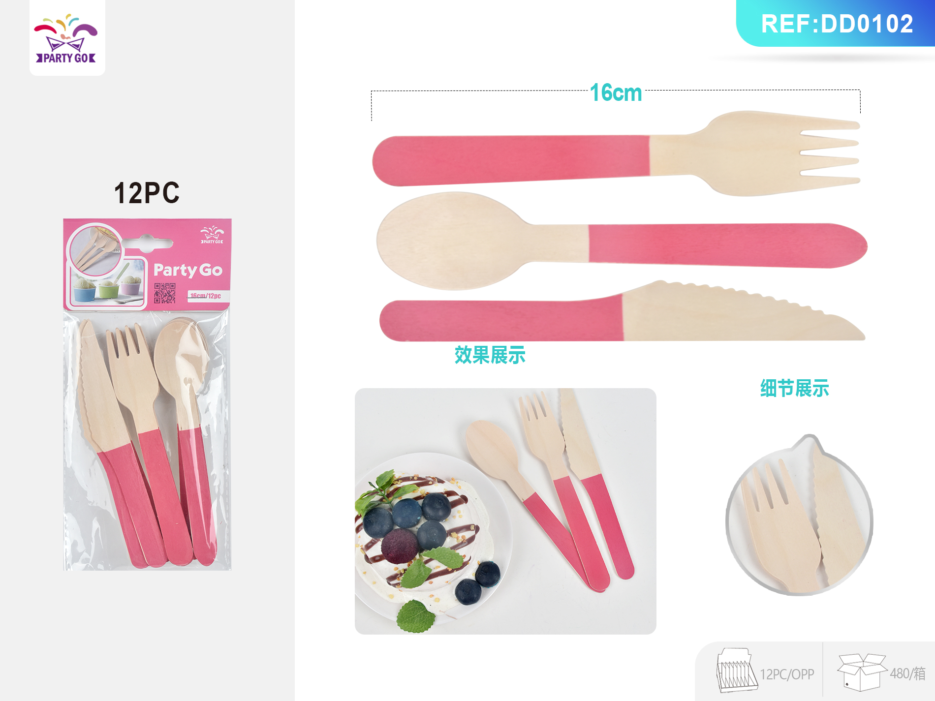 06-O3-Rose Red Mieszane sztućce z drewna brzozowego Łyżka 16 cm