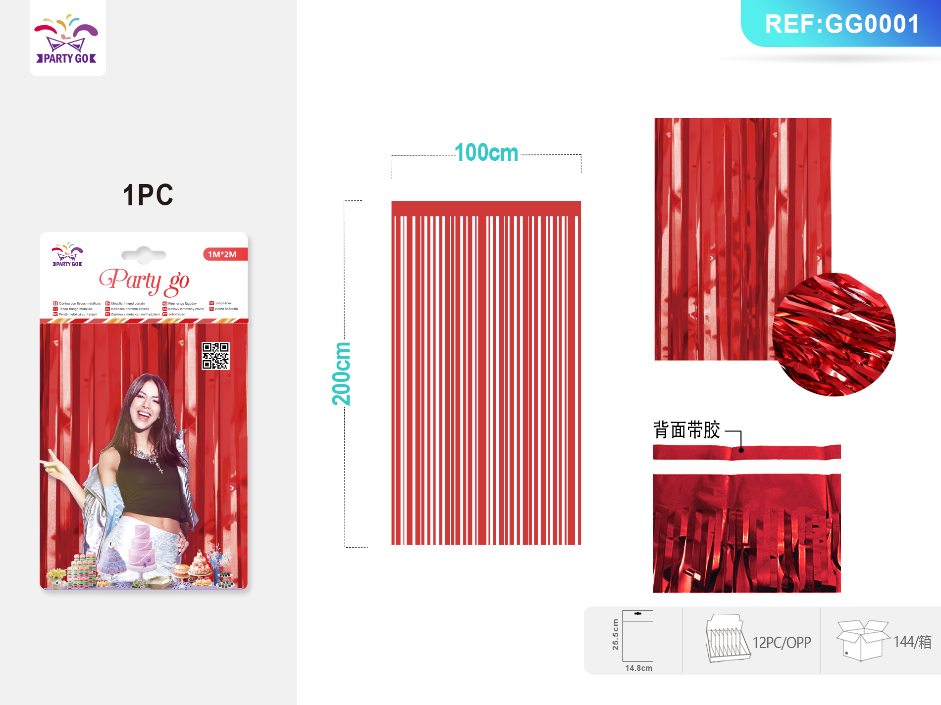 07-L2-Bright Rain Silk Curtain in Bright Red, 1pc x 2m (Same as GG0212)