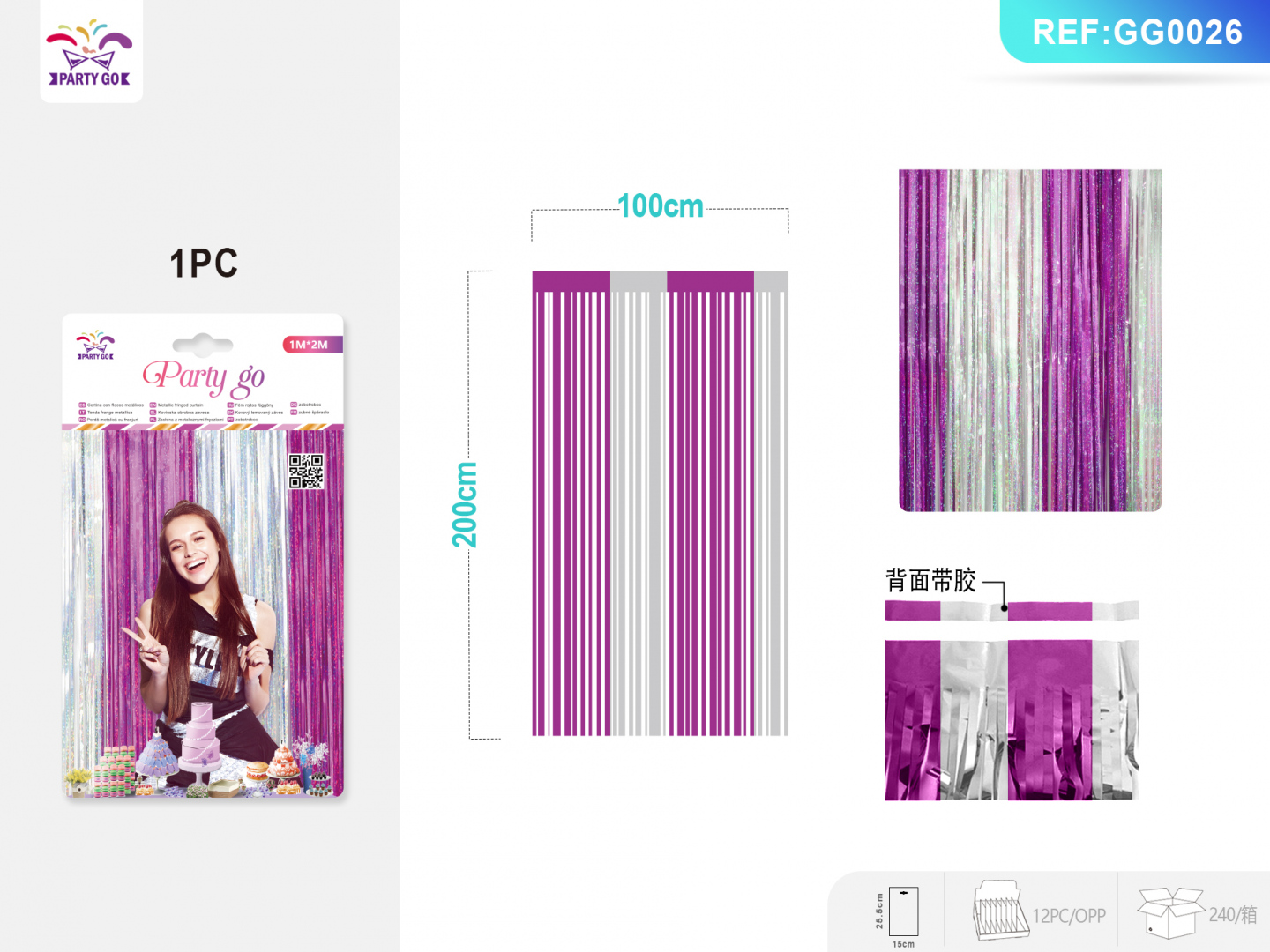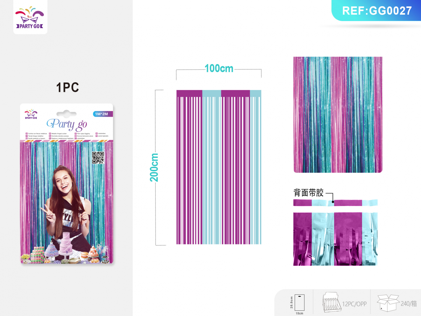 07-K3-Double Color Laser Rain-Thread Curtain (Lake Blue & Rose Red) 1PC1*2M