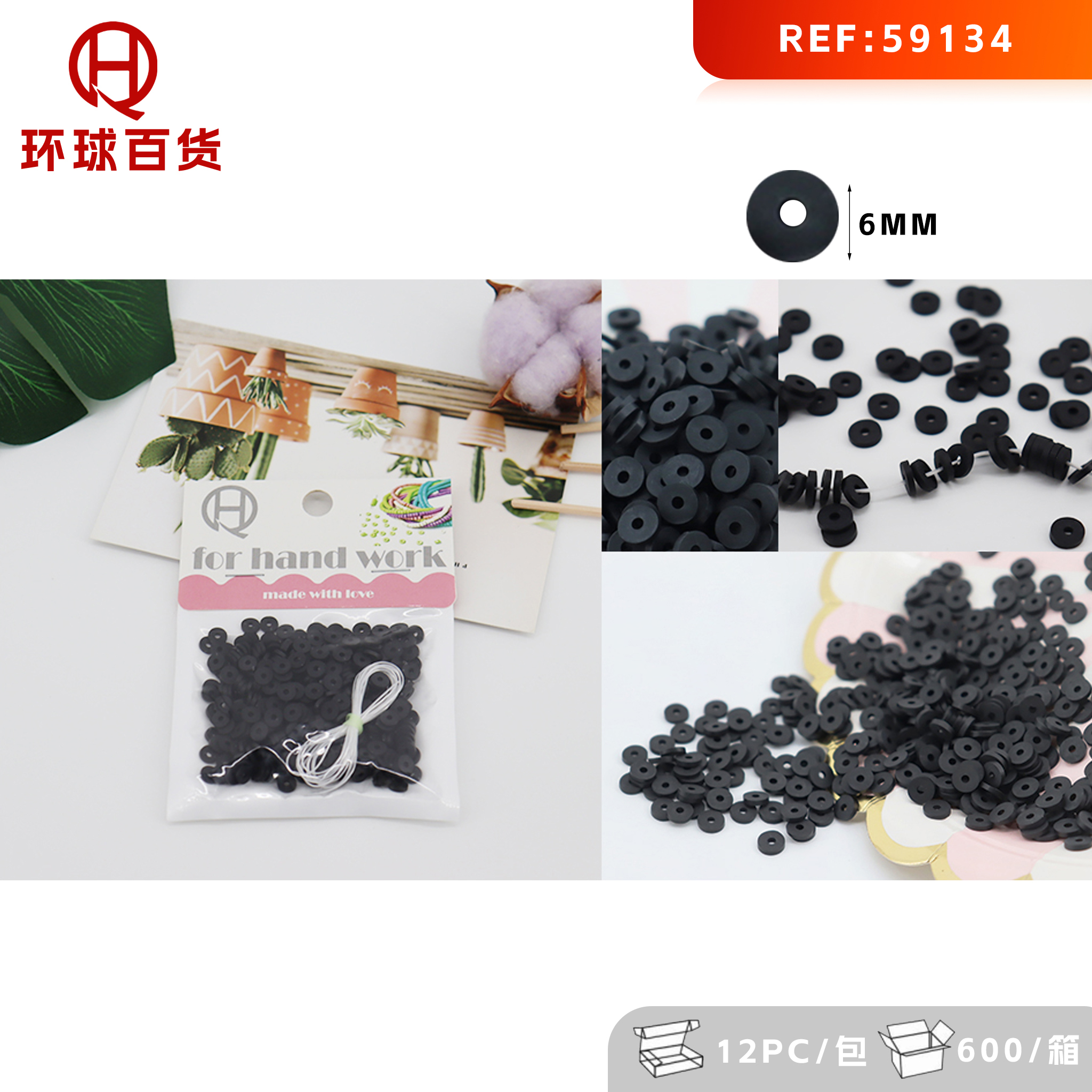 6mm Handmade polymer clay beads black
