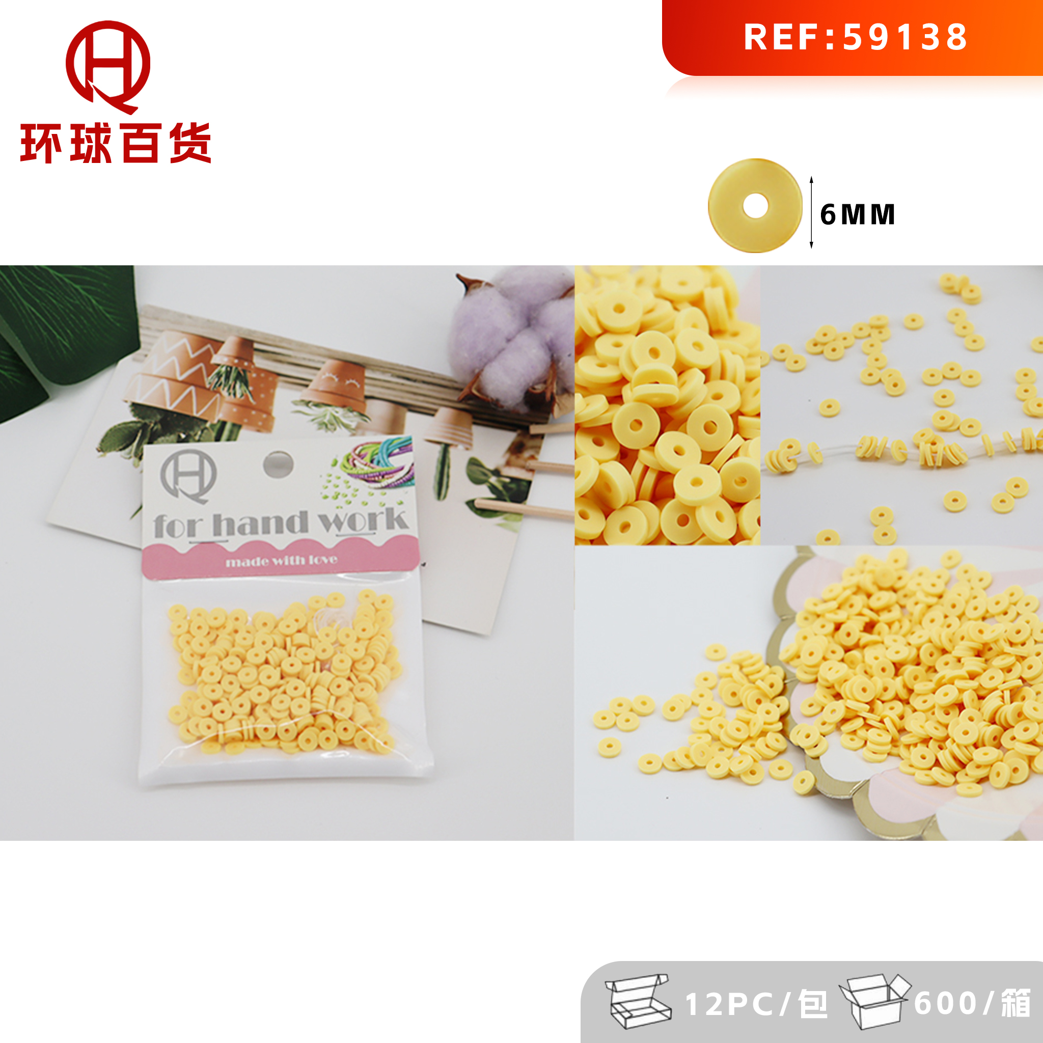 6mm Handmade polymer clay beads light yellow