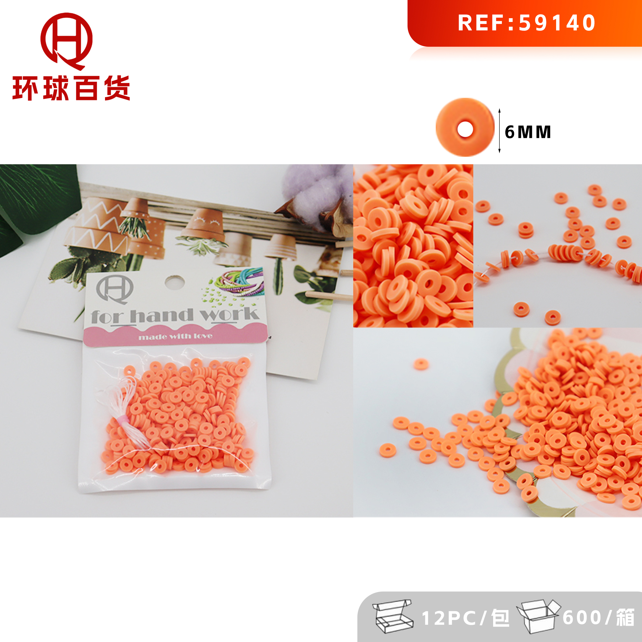 6mm Handmade polymer clay beads orange color