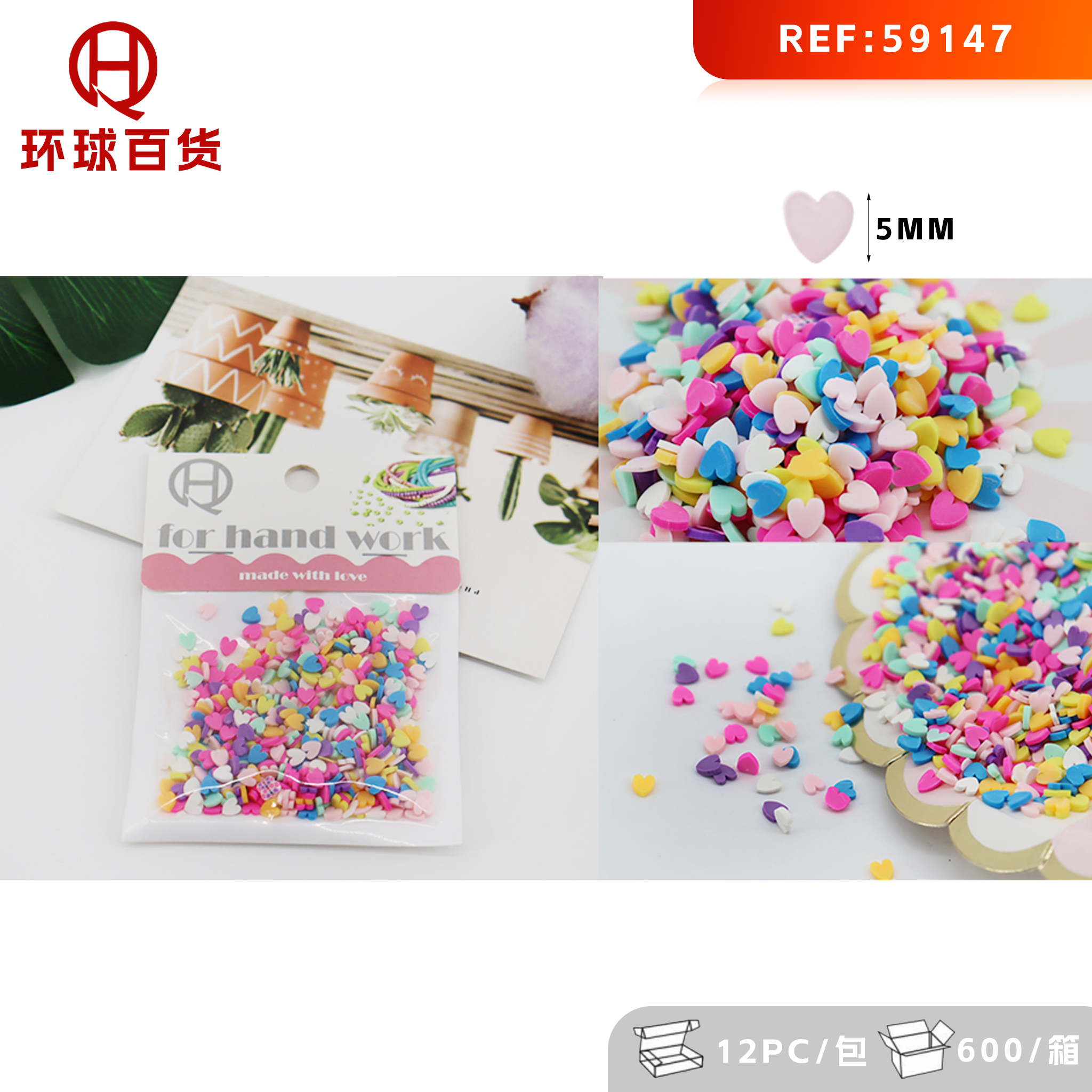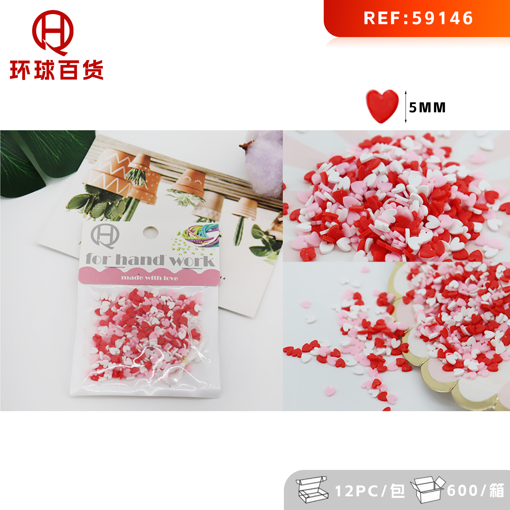 Handmade polymer clay beads Love