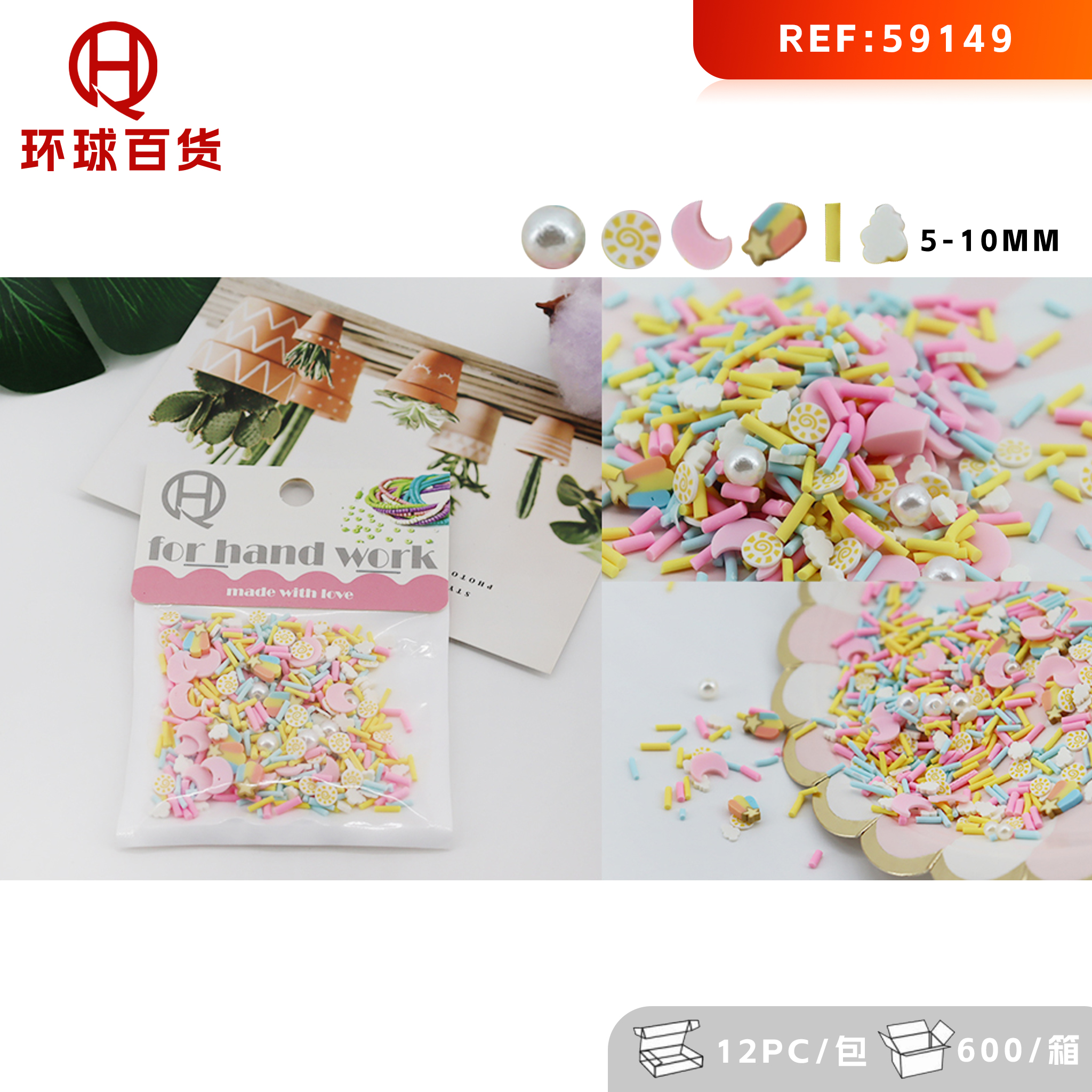 Handmade polymer clay beads 8mmHaima+6mmClouds+5mmbead