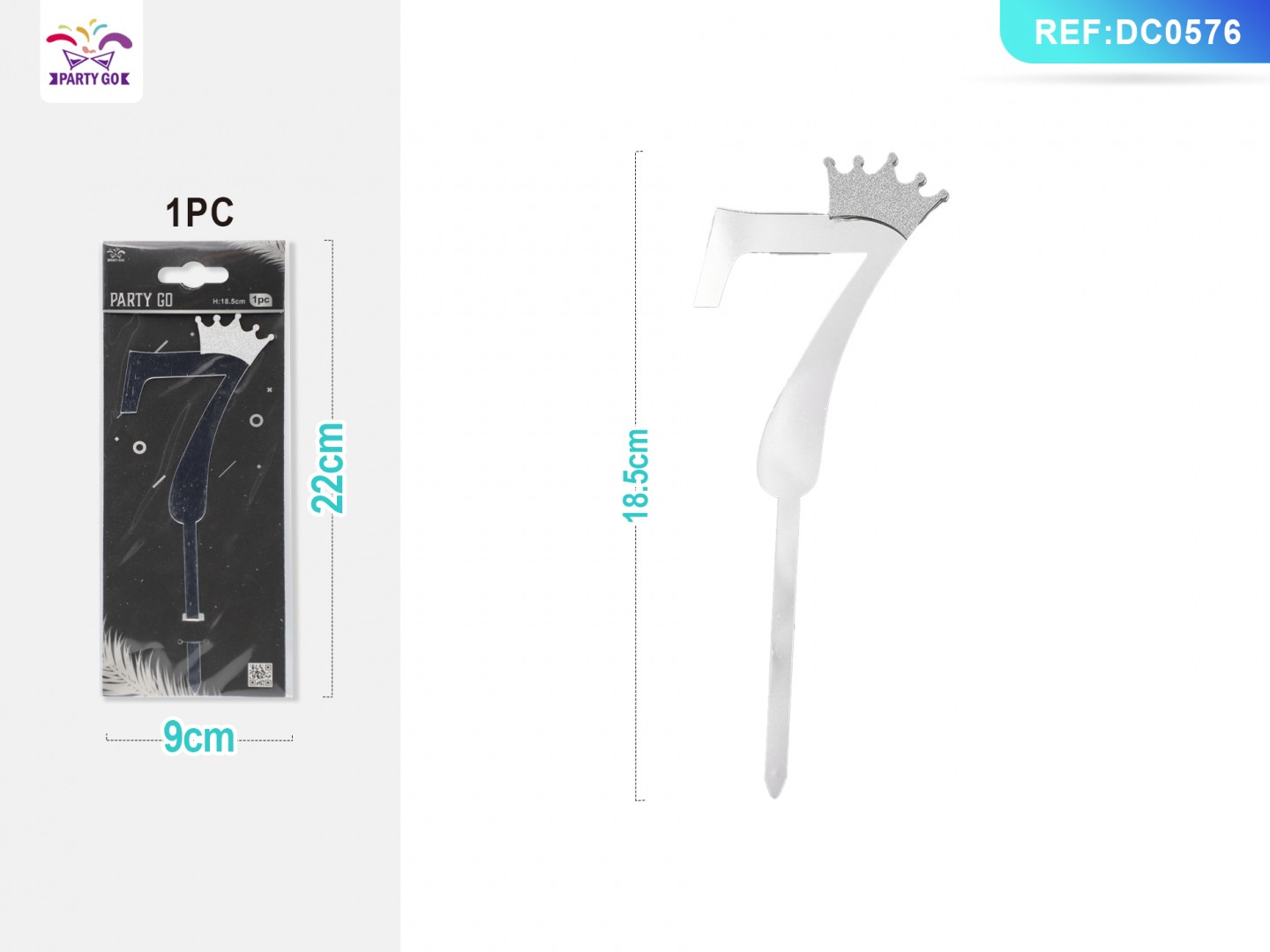 02-F4-Silver Powder Acrylic Crown Number 7 Cake Flag, 18.5CM, 1pc