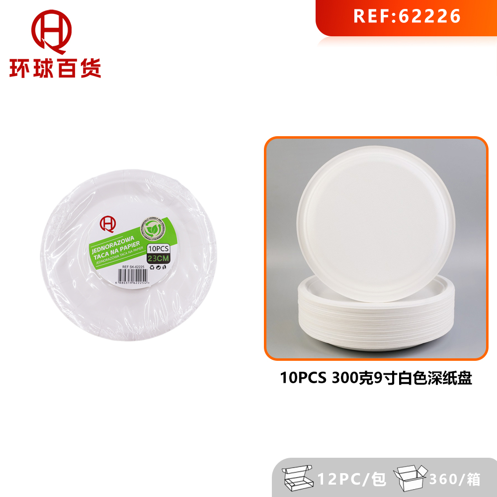 06-K4-9-inch White Dark Paper Plate 10PCS